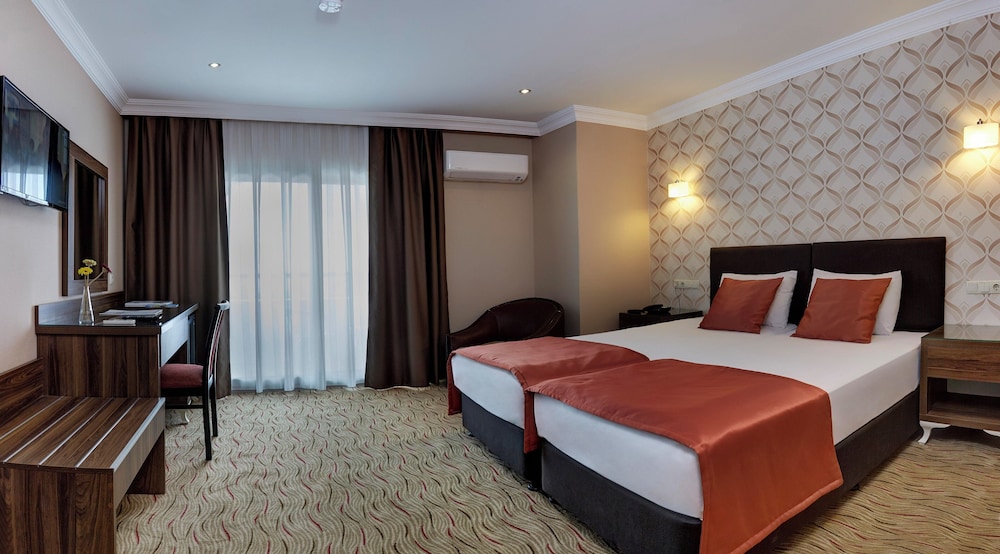 Zum Angebot gehören ein Businesscenter, ein Express-Check-in und ein Express-Check-out. Der Flughafentransfer (rund um die Uhr) ist kostenpflichtig; außerdem gibt es vor Ort Folgendes: Parken ohne Service (kostenlos). 3 Außenpools lassen ebenso keine Langweile aufkommen wie: Wasserrutsche. Kostenloses WLAN, ein Concierge-Service und Einkaufsmöglichkeiten stehen ebenfalls zur Verfügung. Dieses Hotel bietet 2 Restaurants, du kannst dir aber auch per Zimmerservice (bitte Zeiten beachten) kulinarische Köstlichkeiten bestellen. Entspann dich mit einem erfrischenden Getränk an der Bar/Lounge oder der Poolbar. Die Unterkunft ist vom 30. September bis zum 14. Mai geschlossen.- Gebühr für den Flughafentransfer: 500 TRY pro Fahrzeug (Einzelfahrkarte), maximale Personenanzahl: 4