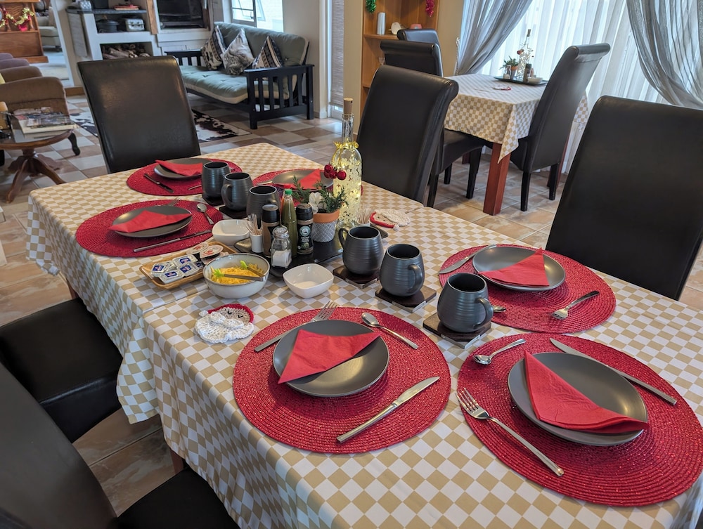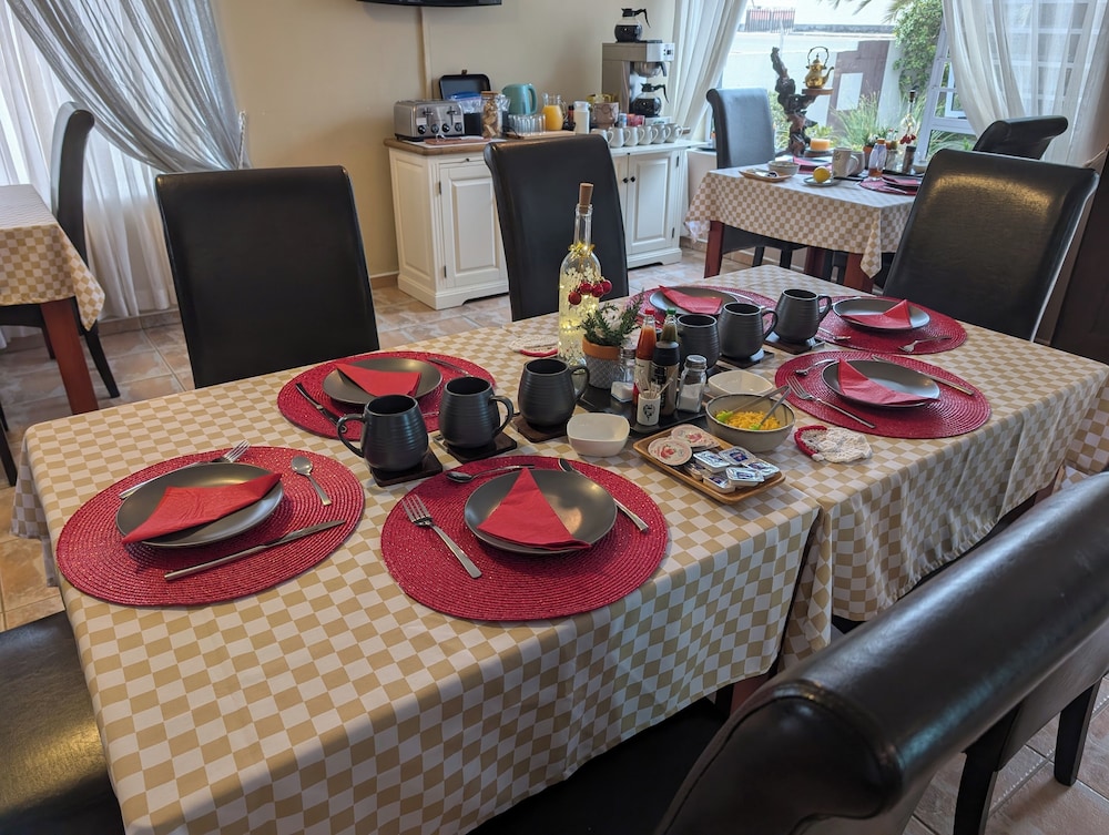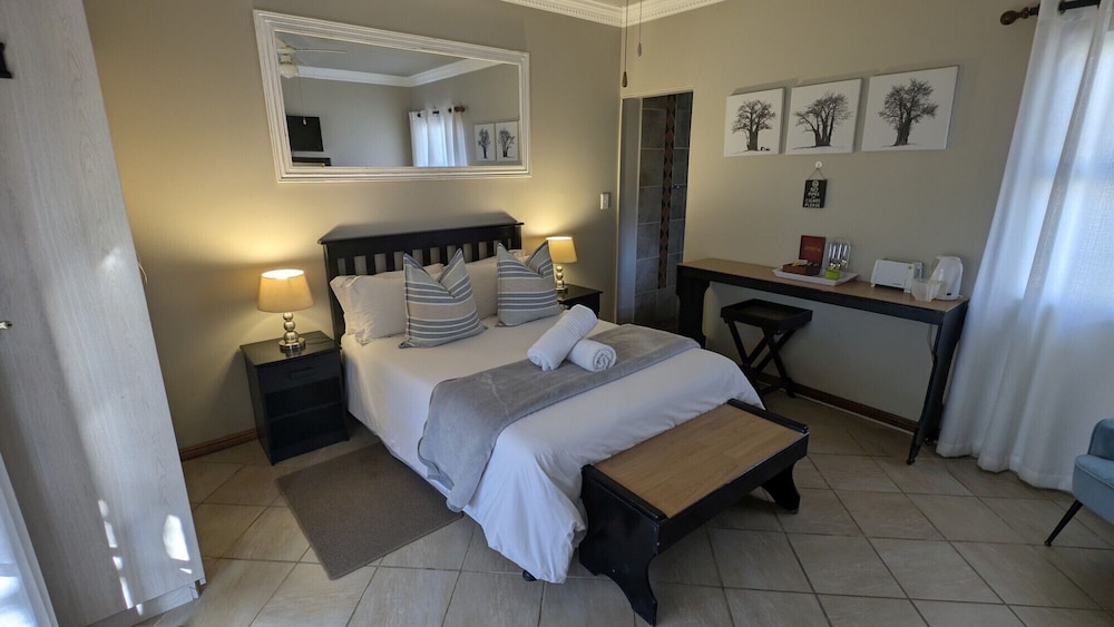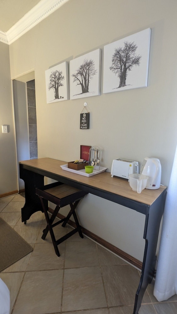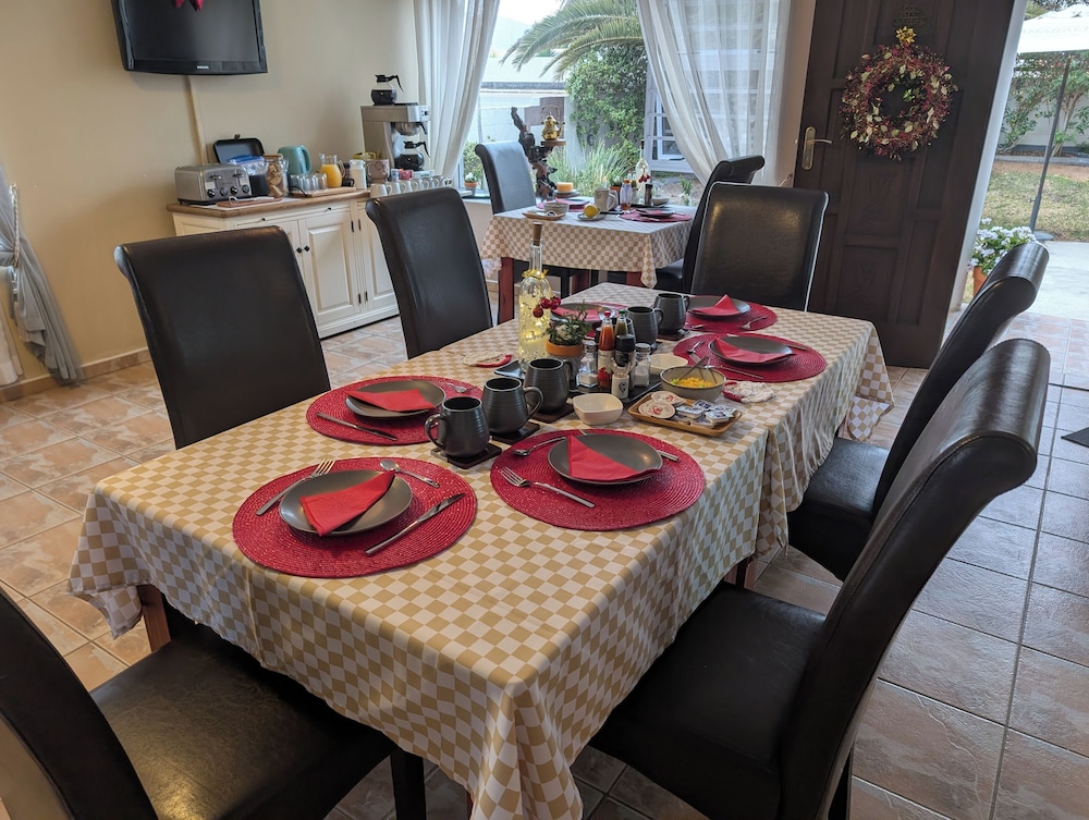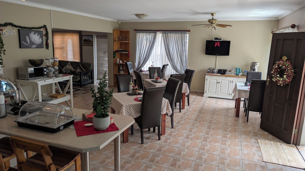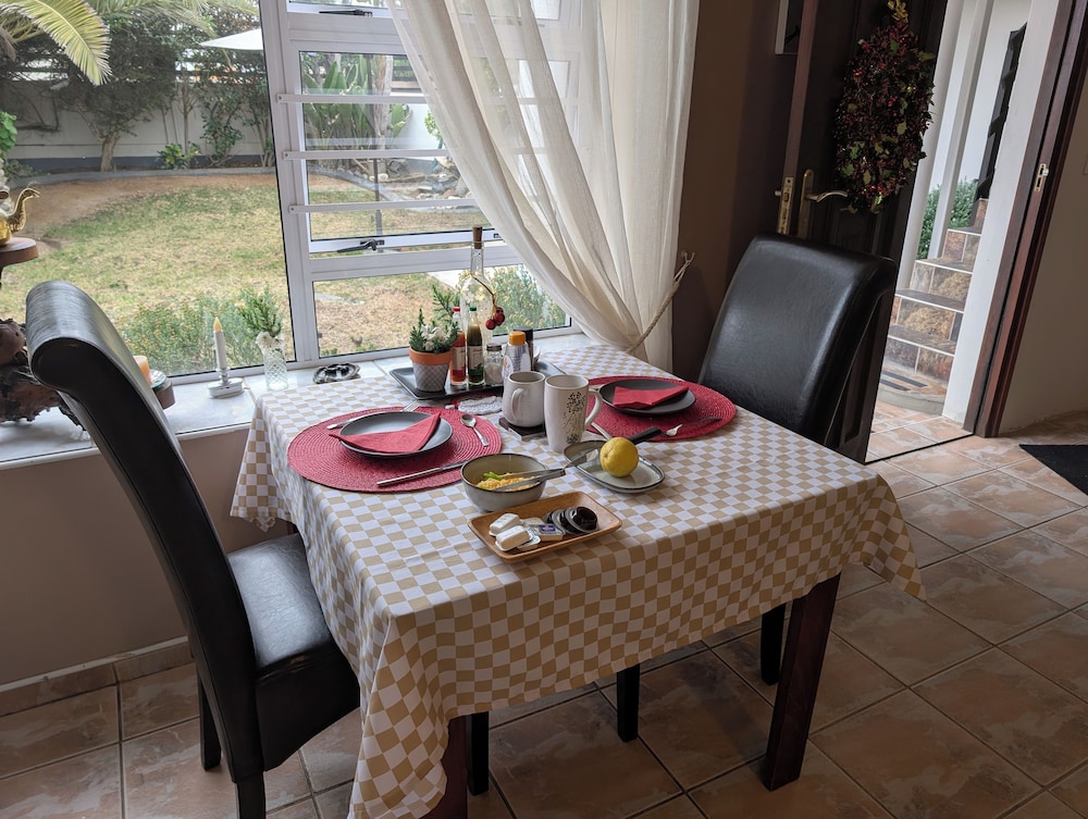 Zum Angebot gehören ein Textilreinigungsservice, mehrsprachiges Personal und Kaffee/Tee im öffentlichen Bereich. Vor Ort gibt es Folgendes: Parken ohne Service (kostenlos). Genieße von folgendem Punkt aus den schönen Ausblick: Garten. Nutz außerdem Einrichtungen und Leistungen wie kostenloses WLAN und einen Concierge-Service. Zu den Highlights, die diese Pension bietet, gehören zudem ein Gemeinschaftswohnzimmer, Grillmöglichkeiten und ein Empfangssaal. Ziele in der Umgebung erreichst du mit dem Shuttle (gegen Gebühr). Ein englisches Frühstück wird unter der Woche von 07:30 Uhr bis 09:00 Uhr und am Wochenende von 08:00 Uhr bis 09:30 Uhr gegen Gebühr angeboten.- Aufpreis für das englische Frühstück: ca. 100 NAD für Erwachsene und ca. 50 NAD für Kinder
