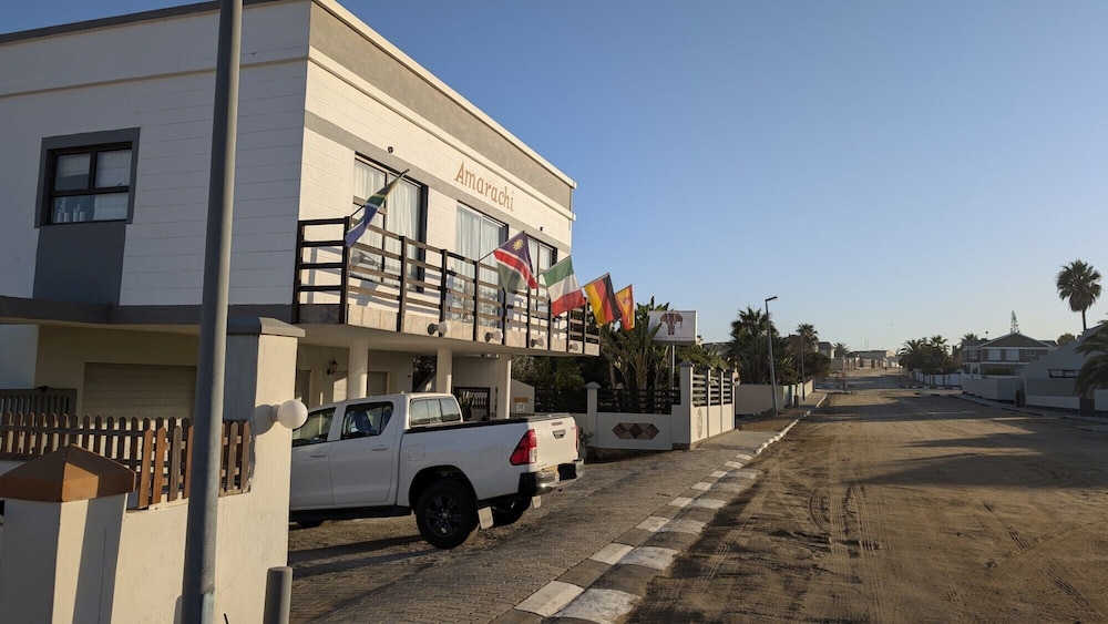 Amarachi Guesthouse in Swakopmund liegt am Meer, nur eine 5-minütige Fahrt von Platz Am Meer und The Dome entfernt. Diese Pension in Strandnähe ist 4,6 km von Swakopmund Museum und 4,6 km von Leuchtturm von Swakopmund entfernt. Fühl dich in den 8 Zimmern, die individuell ausgestattet sind und Kühlschrank und einen Flachbildfernseher bieten, wie zu Hause. Ein WLAN-Internetzugang (kostenlos) ist ebenso verfügbar wie Satellitenempfang. Zur Austattung gehören Safes und Wasserkocher mit Kaffee-/Teezubehör; die Zimmer werden täglich sauber gemacht. Entfernungen werden bis auf 0,1 Kilometer gerundet.