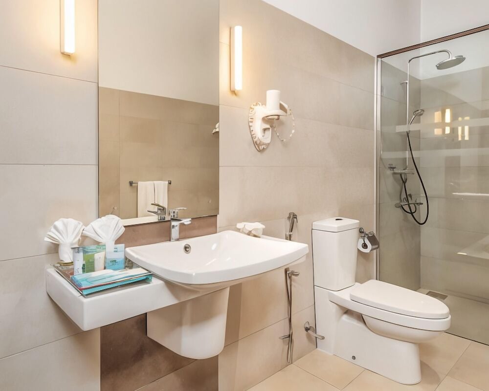 Amethyst Resort Passikudah in Pasikuda liegt am Strand, nur 15 Gehminuten von Pasikuda Beach und Strand in Kalkudah entfernt. Dieses Hotel in Strandnähe ist 18,7 km von Kirche des Heiligen Nikolaus Chenkaladi und 21 km von Batticaloa Lagune entfernt. Fühl dich in einem der 38 klimatisierten Zimmer mit LED-Fernseher wie zu Hause. Die Zimmer haben eigene Patios. Ein WLAN-Internetzugang (kostenlos) ist ebenso verfügbar wie Kabelempfang. Es gibt eigene Badezimmer mit Duschen, die über Regenduschen und kostenlose Toilettenartikel verfügen. Entfernungen werden bis auf 0,1 Kilometer gerundet.