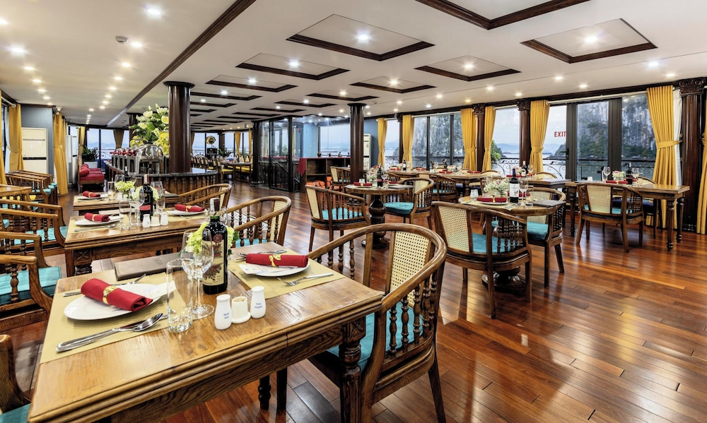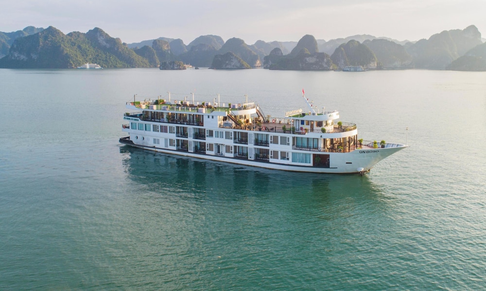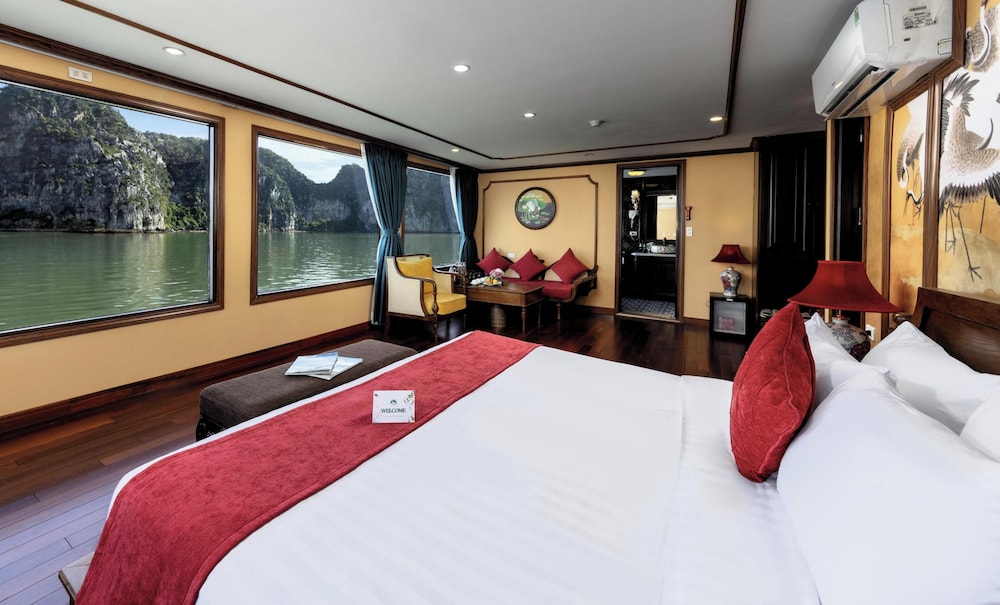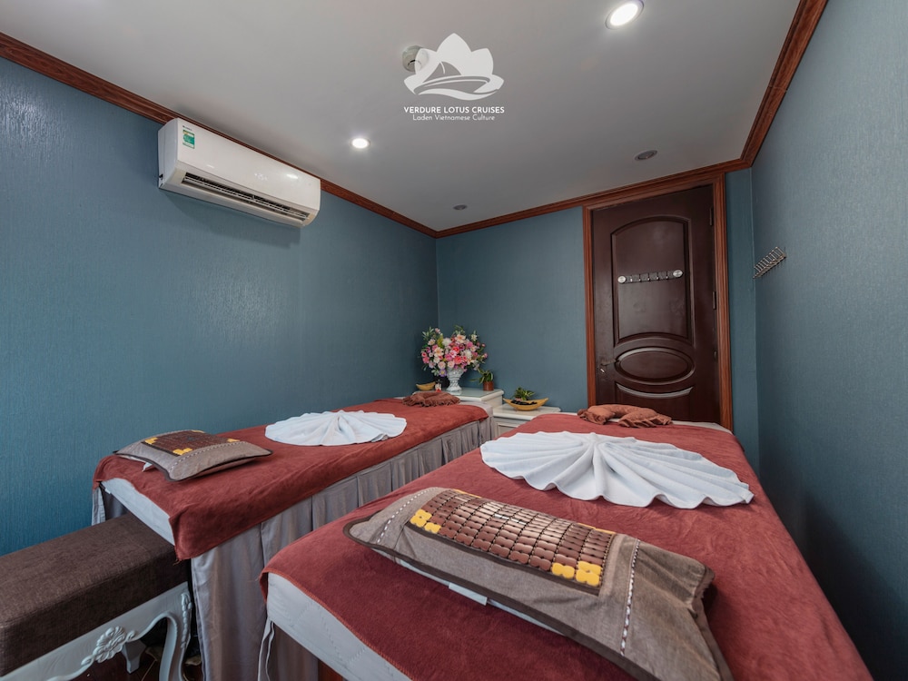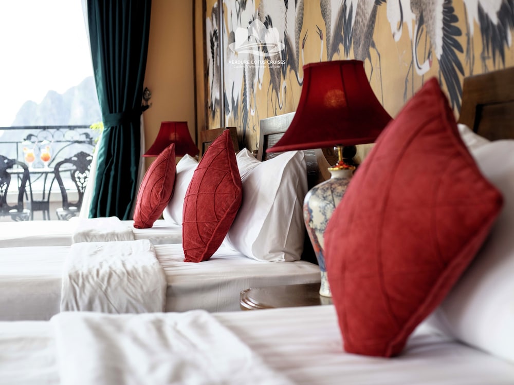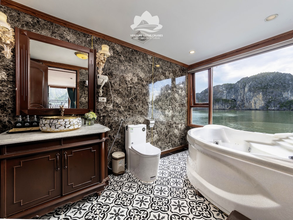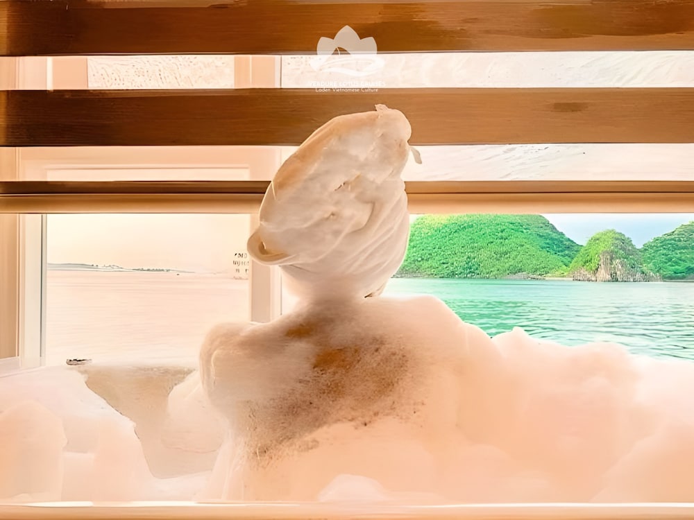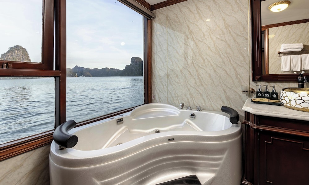 Verdure Lotus Grandeur Cruise on Ha Long Bay in Hạ Long ist nur 9,9 km von Nachtmarkt von Hạlong und 14,5 km von Markt von Bai Chay entfernt. Dieses Kreuzfahrtschiff in Strandnähe ist 19,4 km von Yachthafen in der Bucht von Halong entfernt. Fühl dich in einem der 22 klimatisierten Zimmer, die über private Whirlpools im Inneren verfügen, wie zu Hause. Die Zimmer haben eigene Balkone oder Patios. Ein WLAN-Internetzugang (kostenlos) steht zur Verfügung. Die Badezimmer mit Duschwannen verfügen über Whirlpools und Regenduschen. Entfernungen werden bis auf 0,1 Kilometer gerundet.
