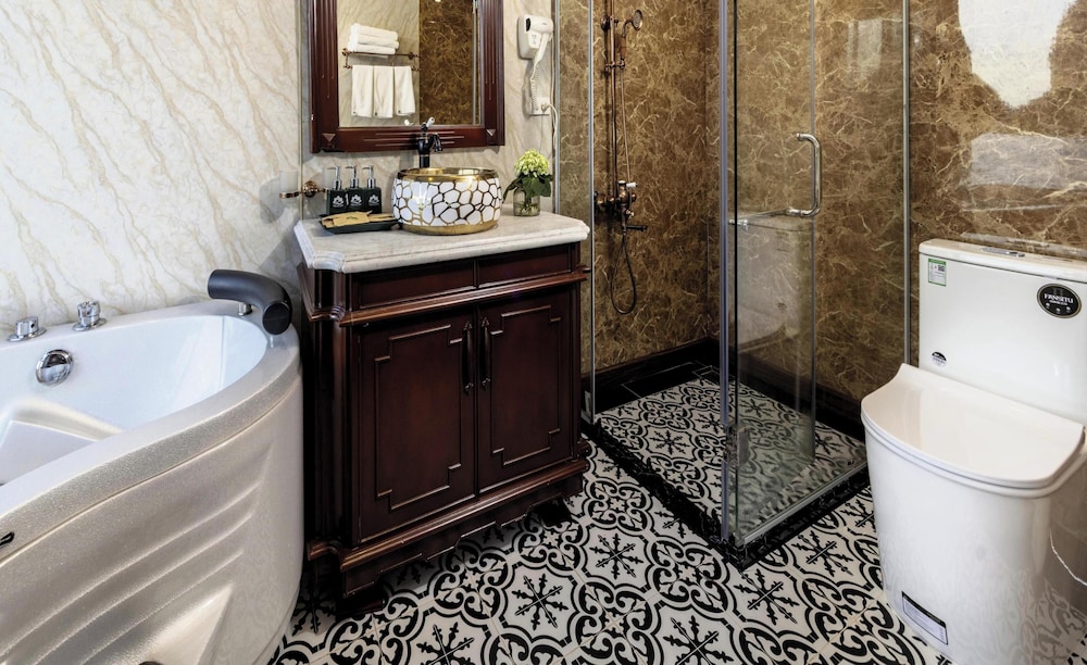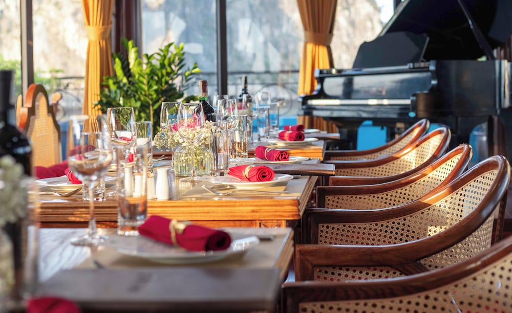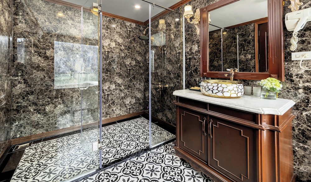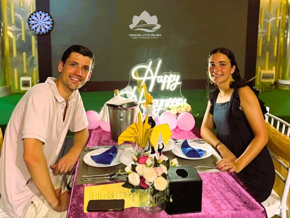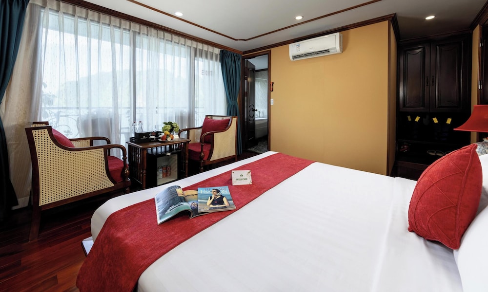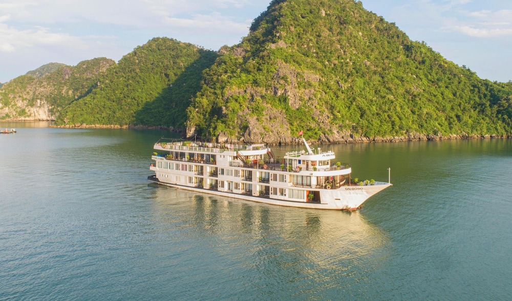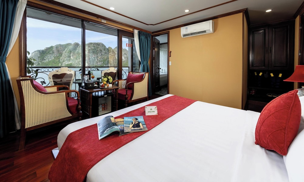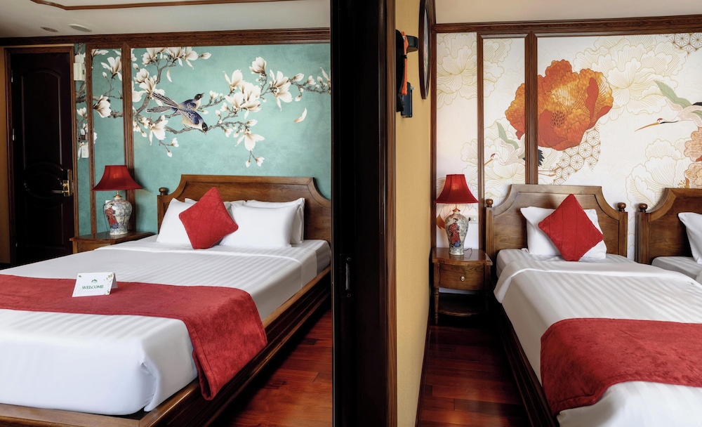 Verdure Lotus Grandeur Cruise on Ha Long Bay in Hạ Long ist nur 9,9 km von Nachtmarkt von Hạlong und 14,5 km von Markt von Bai Chay entfernt. Dieses Kreuzfahrtschiff in Strandnähe ist 19,4 km von Yachthafen in der Bucht von Halong entfernt. Fühl dich in einem der 22 klimatisierten Zimmer, die über private Whirlpools im Inneren verfügen, wie zu Hause. Die Zimmer haben eigene Balkone oder Patios. Ein WLAN-Internetzugang (kostenlos) steht zur Verfügung. Die Badezimmer mit Duschwannen verfügen über Whirlpools und Regenduschen. Entfernungen werden bis auf 0,1 Kilometer gerundet.