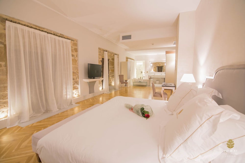 Hotel Palacio de Úbeda 5 G.L. bringt den Vorteil, dass du in Úbeda zentral gelegen und nur wenige Schritte von den folgenden Sehenswürdigkeiten entfernt bist: Sinagoga del Agua und Casa Museo Arte Andalusí. Dieses Hotel im luxuriösen Stil ist 0,4 km von Kirche San Pablo und 0,6 km von El Salvador Aussichtspunkt entfernt. Gönn dir einen Aufenthalt in einem der 37 Zimmer, die individuell eingerichtet sind und über Fußbodenheizung und einen Plasmafernseher verfügen. Dein Bett bietet Daunenbettdecken und Bettwäsche aus ägyptischer Baumwolle. Ein WLAN-Internetzugang (kostenlos) ist ebenso verfügbar wie Digitalempfang. Es sind eigene Badezimmer mit Badewannen und Duschen (separat) vorhanden, die Komfortbadewannen und Designer-Toilettenartikel bieten. Entfernungen werden bis auf 0,1 Kilometer gerundet.