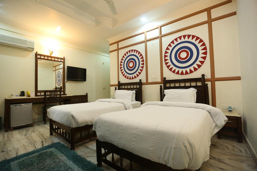 Das Hotel befindet sich am Kailash Gate in Muni ki Reti, Rishikesh. Es liegt zentral und bietet einen einfachen Zugang zu allen touristischen Zielen von Rishikesh, Muni ki Reti, Swarg Ashram, Geeta Bhawan, Shivananda Ashram, Ram Jhula und Lakshman Jhula. Das Hotel ist etwa 23 km vom Flughafen Jolly Grant (Flughafen Dehradun) und etwa 6 km vom Bahnhof Rishikesh entfernt. Das klimatisierte Hotel verfügt über 22 Zimmer und bietet ein tolles Ambiente mit geschmackvoll gestalteten Innenräumen und gepflegten Außenbereichen. Die Gäste werden in der Lobby empfangen, die eine 24-Stunden-Rezeption sowie einen Hotelsafe, eine Wechselstube und einen Zeitungskiosk bietet. Die Gäste können einen Drink an der Bar genießen oder im gut ausgestatteten Restaurant speisen. Geschäftsreisende können die Konferenzeinrichtungen und den Internetzugang nutzen. Zu den weiteren Annehmlichkeiten gehören Zimmer- und Wäscheservice sowie Parkplätze für Anreisende mit dem Auto. Das Hotel bietet 16 Deluxe-Zimmer und 6 Executive-Suiten. Die Zimmer sind gut eingerichtet und bieten ein traditionelles Ambiente im Gujarati- und Rajasthani-Stil für Komfort. Die Zimmer sind geräumig und komfortabel. Alle Zimmer verfügen über ein eigenes Bad mit Warm- und Kaltwasser, einer Dusche und einer Badewanne sowie ein Doppel- oder Kingsize-Bett, Direktwahltelefon und Satelliten-/Kabel-TV. Zu den weiteren Annehmlichkeiten gehören ein Safe, ein Kühlschrank, Tee- und Kaffeezubehör sowie eine individuell regulierbare Klimaanlage. Die Gäste können den Außenpool des Hotels nutzen.