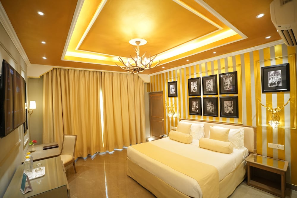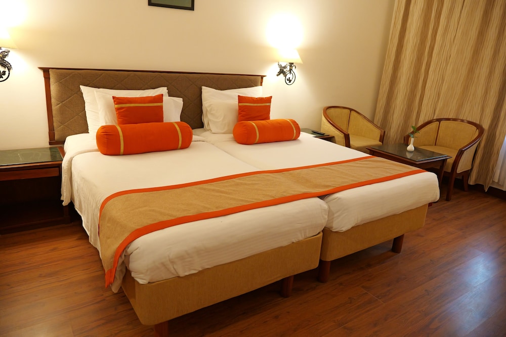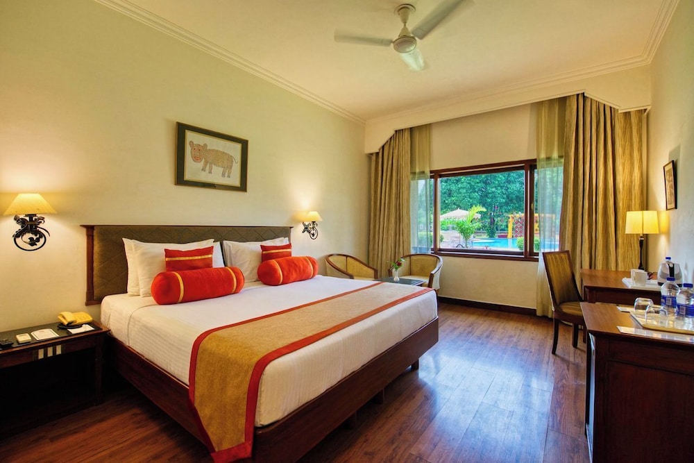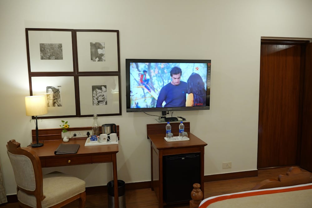 Clarks Khajuraho in Rajnagar liegt in unmittelbarer Nähe zum Kongresszentrum, nur 5 Autominuten von Museums und Parvati Temple entfernt. Dieses Hotel für Familien ist 2,4 km von Duladeo Temple und 2,6 km von Javari Temple entfernt. Fühl dich in einem der 100 klimatisierten Zimmer mit Kühlschrank und LED-Fernseher wie zu Hause. Ein WLAN-Internetzugang (kostenlos) ist ebenso verfügbar wie Satellitenempfang. Die Badezimmer bieten kostenlose Toilettenartikel und Bademäntel. Zur Austattung gehören Safes und Schreibtische; die Zimmer werden täglich sauber gemacht. Entfernungen werden bis auf 0,1 Kilometer gerundet.