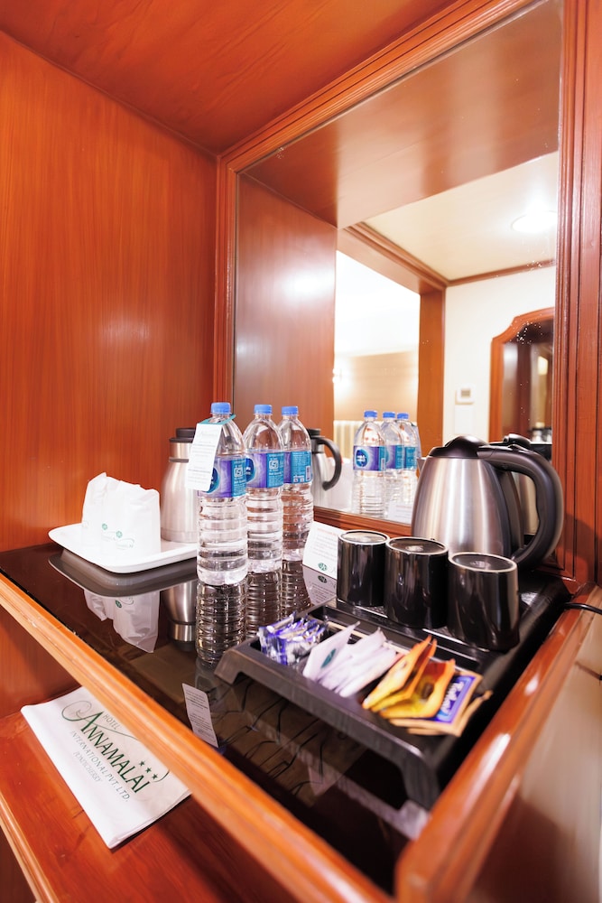 Hotel Annamalai International besticht durch eine zentrale Lage in Puducherry, nur 15 Autominuten entfernt von: Strandpromenade Pondicherry und Botanischer Garten. Dieses Hotel ist 2,5 km von Church of Our Lady of the Immaculate Conception und 2,7 km von Kanniga Parameswari Temple entfernt. Fühl dich in den 70 Zimmern, die individuell eingerichtet sind und Minibar und einen LCD-Fernseher bieten, wie zu Hause. In deinem Zimmer findest du ein Memory-Foam-Bett mit hochwertige Bettwaren vor. Ein WLAN-Internetzugang (gegen Gebühr) ist ebenso verfügbar wie Digitalempfang. Die Badezimmer bieten Duschen, kostenlose Toilettenartikel und Haartrockner. Entfernungen werden bis auf 0,1 Kilometer gerundet.