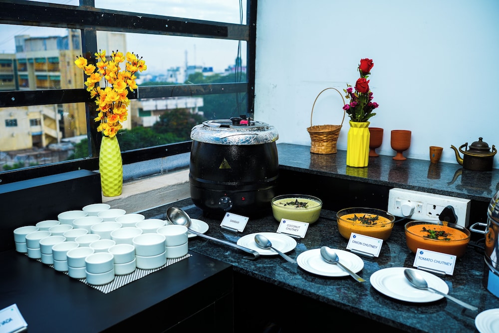 Zip by Spree Hotel Mangala International liegt im Herzen von Coimbatore, 5 Minuten Fahrt entfernt von: Vellingiri Hill Temple und Ganga Hospital. Dieses Hotel ist 1,5 km von Brookfields und 1,6 km von VOC Park & Zoo entfernt. Fühl dich in einem der 68 klimatisierten Zimmer mit Flachbildfernseher wie zu Hause. Ein WLAN-Internetzugang (kostenlos) ist ebenso verfügbar wie Kabelempfang. Es sind eigene Badezimmer mit Duschen vorhanden, die über kostenlose Toilettenartikel und Haartrockner verfügen. Zur Austattung gehören Telefone ebenso wie Safes und Schreibtische. Entfernungen werden bis auf 0,1 Kilometer gerundet.