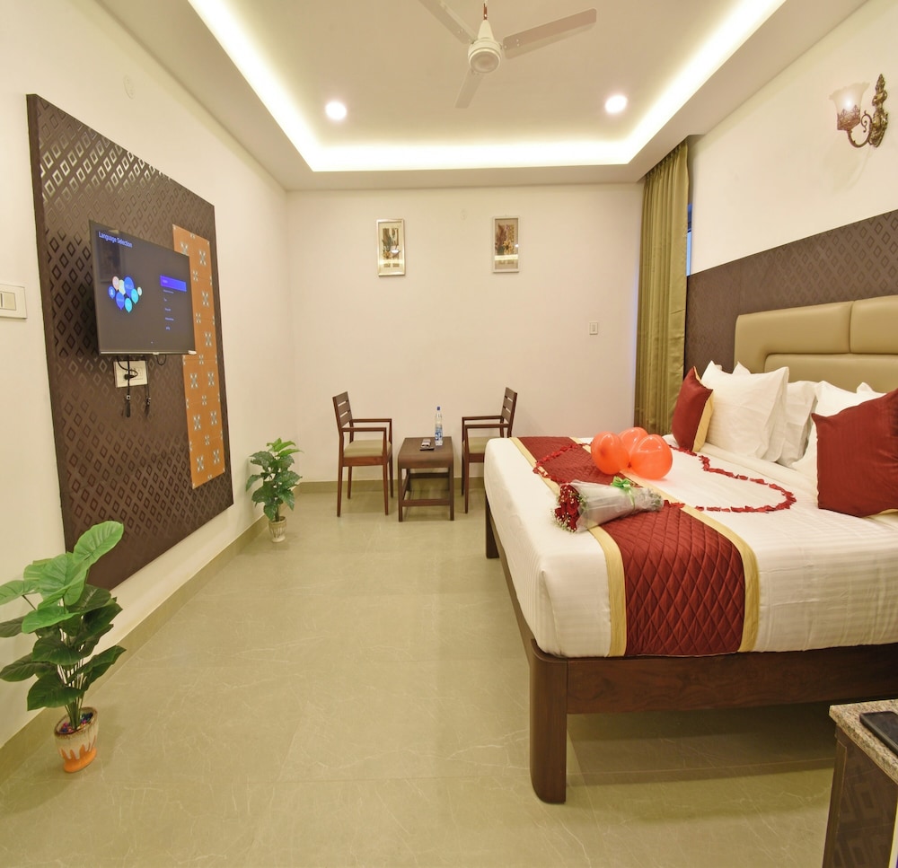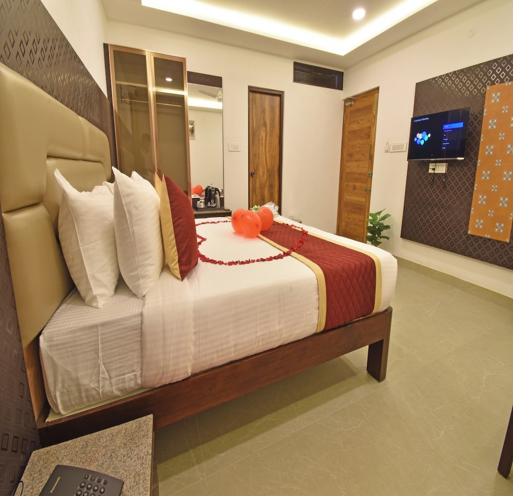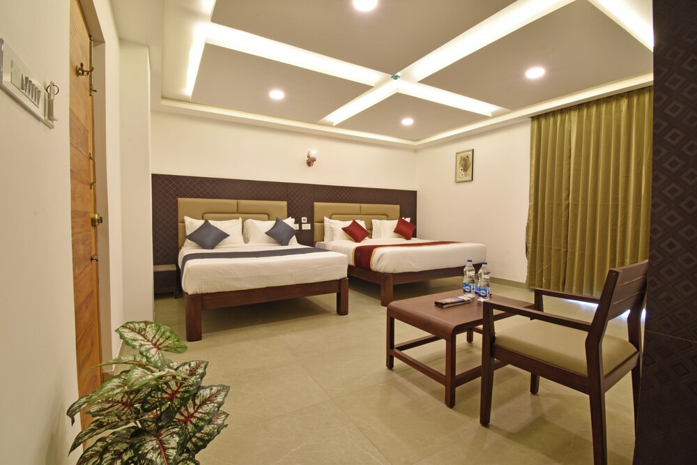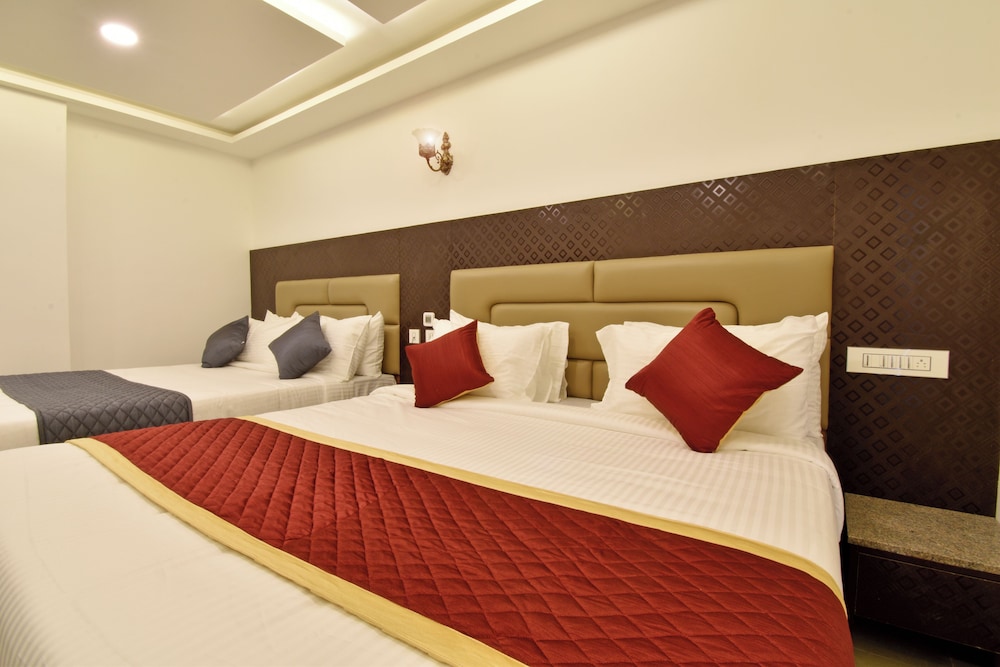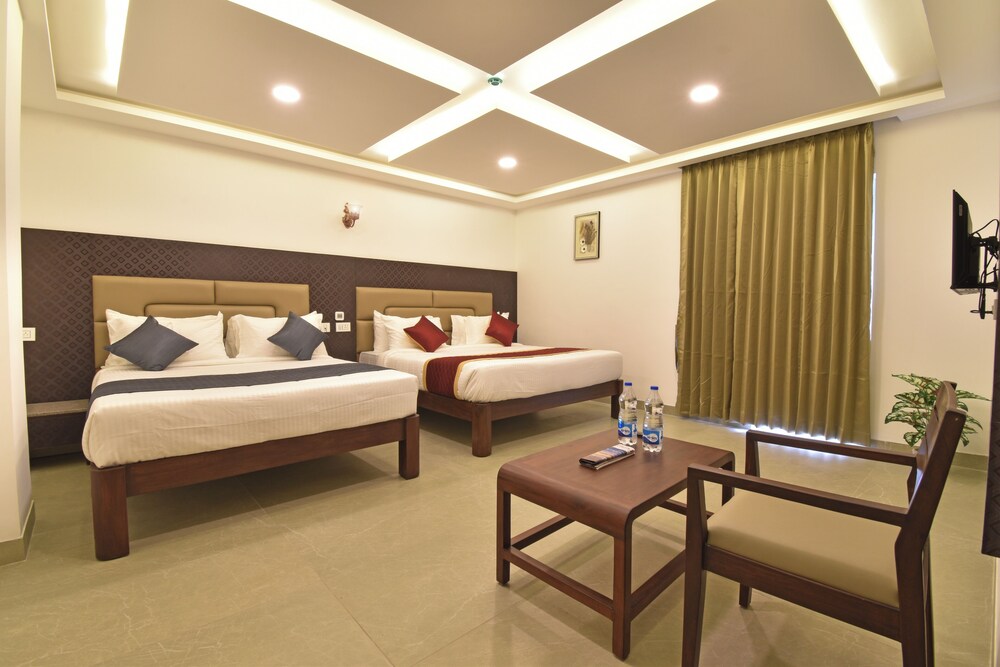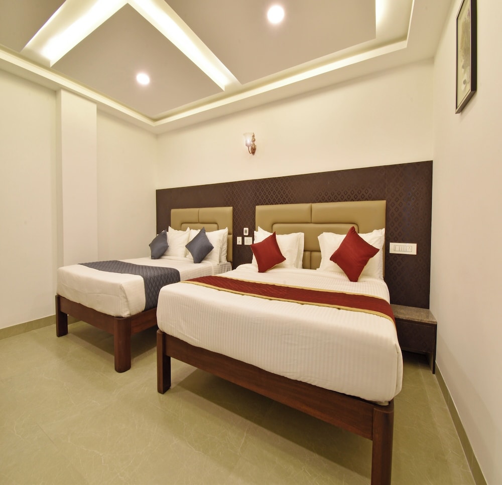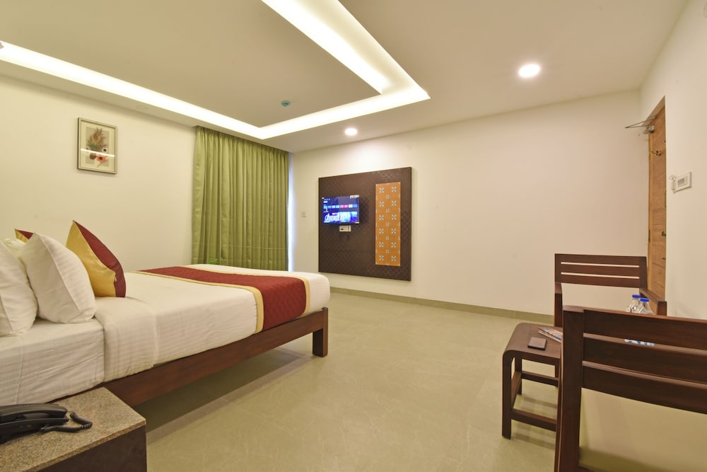 A K G Hotel in Puducherry ist nur einen 15-minütigen Fußmarsch von Botanischer Garten und Strandpromenade Pondicherry entfernt. Dieses Hotel ist 1,1 km von Eglise de Sacre Coeur de Jesus Church und 1,2 km von Basilica of the Sacred Heart entfernt. Fühl dich in einem der 32 klimatisierten Zimmer mit LCD-Fernseher wie zu Hause. Ein WLAN-Internetzugang (kostenlos) ist ebenso verfügbar wie Kabelempfang. Es gibt eigene Badezimmer mit Duschen, die über Regenduschen und kostenlose Toilettenartikel verfügen. Zur Austattung gehören kostenloses Mineralwasser und Deckenventilatoren; die Zimmer werden einmal pro Aufenthalt sauber gemacht. Entfernungen werden bis auf 0,1 Kilometer gerundet.