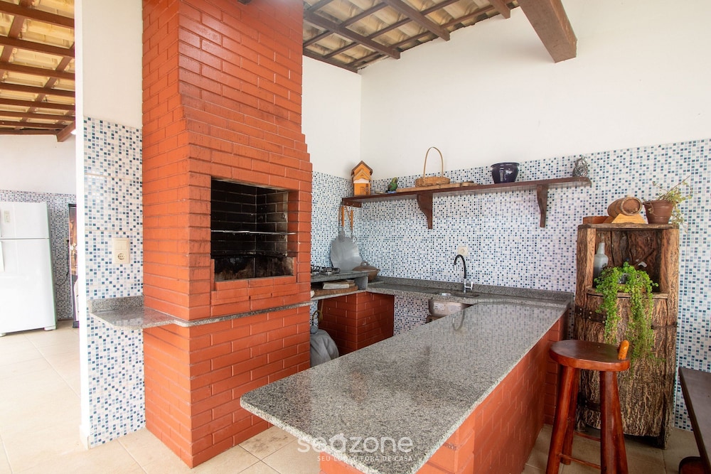Dieses Chalet in Porto Seguro (Praia de Taperapuã (Strand)) ist nur 15 Minuten Fußweg entfernt von: Freizeitkomplex Toa Toa und Axe Moi Entertainment Complex. Dieses Chalet ist 8,2 km von Muta Strand und 13,6 km von Mucugê-Straße entfernt. Außerdem genießt du Annehmlichkeiten wie Fernseher und Kochgeschirr/Geschirr/Besteck. Entfernungen werden bis auf 0,1 Kilometer gerundet.