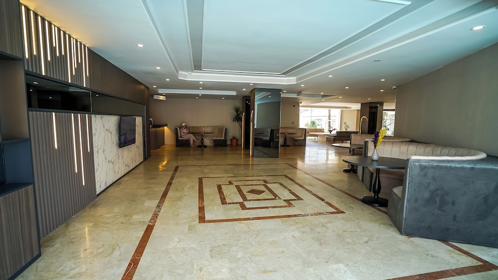 Nex Royal Beach Hotel - All Inclusive liegt in Kemer und ist eine 1-minütige Fahrt von Beldibi Beach Park und eine 7-minütige Fahrt von Topçam entfernt. Dieses Hotel mit All-inclusive-Leistungen ist 16,4 km von Konyaaltı-Strand und 21,4 km von Konyaaltı-Strandpark entfernt. Fühl dich in einem der 116 Zimmer, die Minibar und einen Flachbildfernseher bieten, wie zu Hause. Ein WLAN-Internetzugang (gegen Gebühr) ist ebenso verfügbar wie Satellitenempfang. Es sind eigene Badezimmer mit Badewannen oder Duschen vorhanden, die über kostenlose Toilettenartikel und Hausschuhe verfügen. Zur Austattung gehören Telefone ebenso wie Safes und kostenloses Mineralwasser. Entfernungen werden bis auf 0,1 Kilometer gerundet.