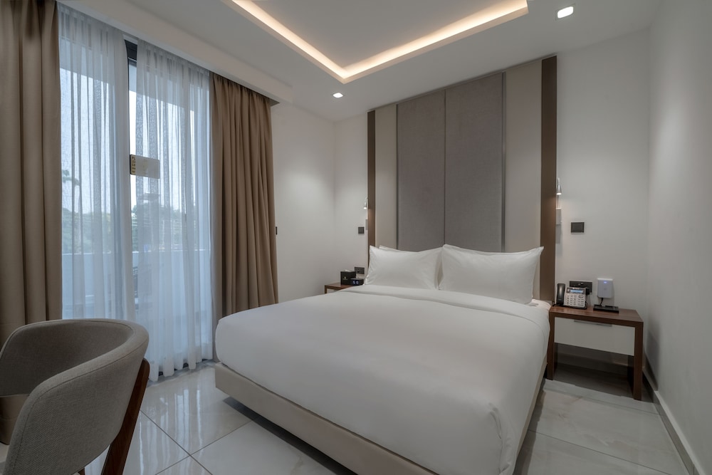 The Pelican Hotel Cantonments Accra besticht durch eine zentrale Lage in Accra, nur 15 Autominuten entfernt von: Accra Mall (Shoppingcenter) und Strand von Labadi. Dieses Aparthotel ist 0,9 km von Oxford Street und 1,3 km von Embassy of China entfernt. Fühl dich in einem der 134 klimatisierten Zimmer, die Kochnischen bieten, die über große Kühlschränke/Gefrierfächer und Öfen verfügen, wie zu Hause. Es gibt einen kostenfreien Internetzugang per Kabel und WLAN. Zur Austattung gehören Safes und Mikrowellen; die Zimmer werden täglich sauber gemacht. Entfernungen werden bis auf 0,1 Kilometer gerundet.