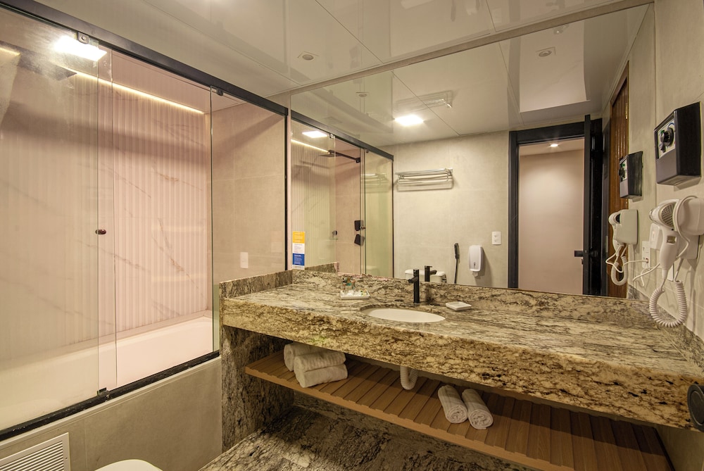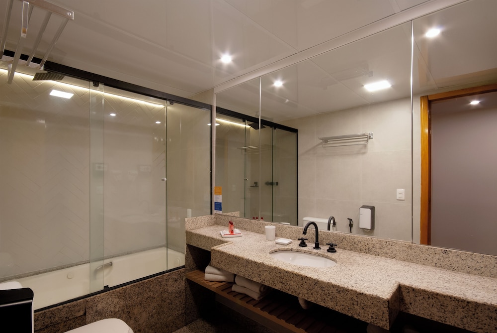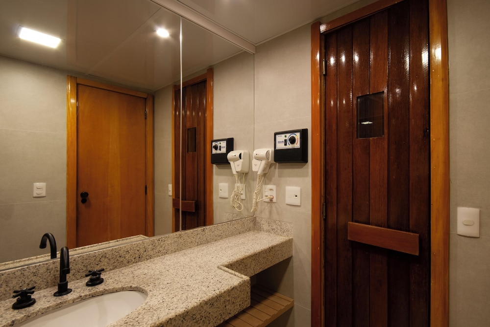 Zum Angebot gehören ein rund um die Uhr geöffnetes Businesscenter, ein Textilreinigungsservice und eine rund um die Uhr besetzte Rezeption. Vor Ort gibt es Folgendes: Parken ohne Service (kostenpflichtig). Du hast die Qual der Wahl zwischen: Außenpool, Sauna und Fitnessmöglichkeiten. Dieses Hotel bietet auch kostenloses WLAN, ein Concierge-Service und ein Fernseher im öffentlichen Bereich. Lass den Tag bei einem Drink an der Bar/Lounge oder Poolbar ausklingen. Ein inbegriffenes Frühstücksbuffet wird täglich von 06:00 Uhr bis 10:00 Uhr angeboten.- Parken ohne Parkservice: 60.00 BRL pro Tag