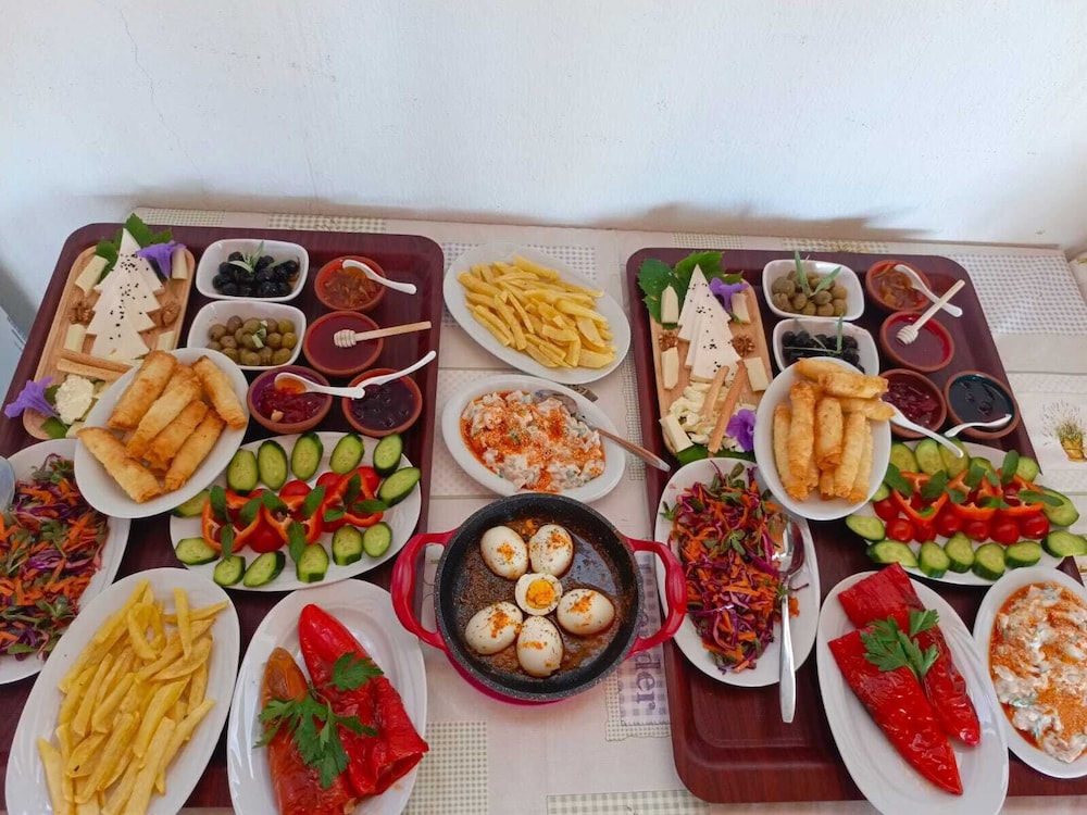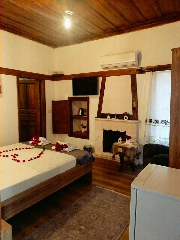 Vor Ort gibt es Folgendes: Parken ohne Service (kostenlos). Genieße die den schönen Ausblick von folgenden Punkten: Terrasse und Garten. Außerdem kannst du kostenloses WLAN nutzen. Ein inbegriffenes einheimisches Frühstück wird täglich von 09:00 Uhr bis 11:00 Uhr angeboten.Karte von Tas Konak Butik Otel Bungalov