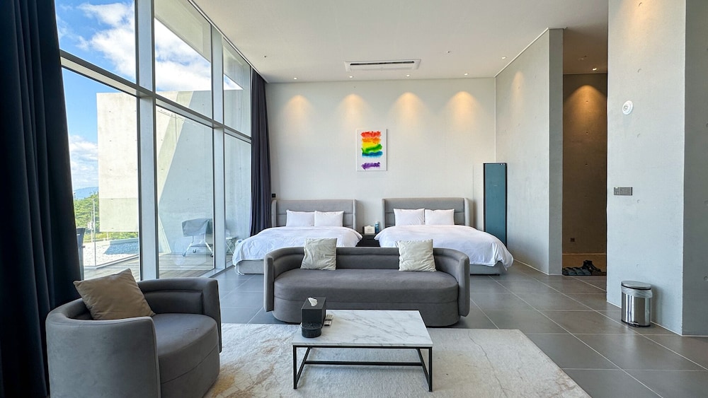 Ely Stay Yeosu liegt im Herzen von Yòsu, nur 15 Gehminuten entfernt von: Dolsan Park und Jasan Park. Dieses Resort ist 1,9 km von aqua planet Yeosu und 2,6 km von Yeosu International Pavilion entfernt. Gönn dir einen Aufenthalt in einem der 31 Zimmer, die individuell ausgestattet sind und über Privatpools und private Whirlpools im Freien verfügen. Die Zimmer haben eigene Patios. Ein WLAN-Internetzugang (kostenlos) steht zur Verfügung. Zu den Highlights gehören separate Sitzecken und die Zimmer werden auf Anfrage sauber gemacht. Entfernungen werden bis auf 0,1 Kilometer gerundet.