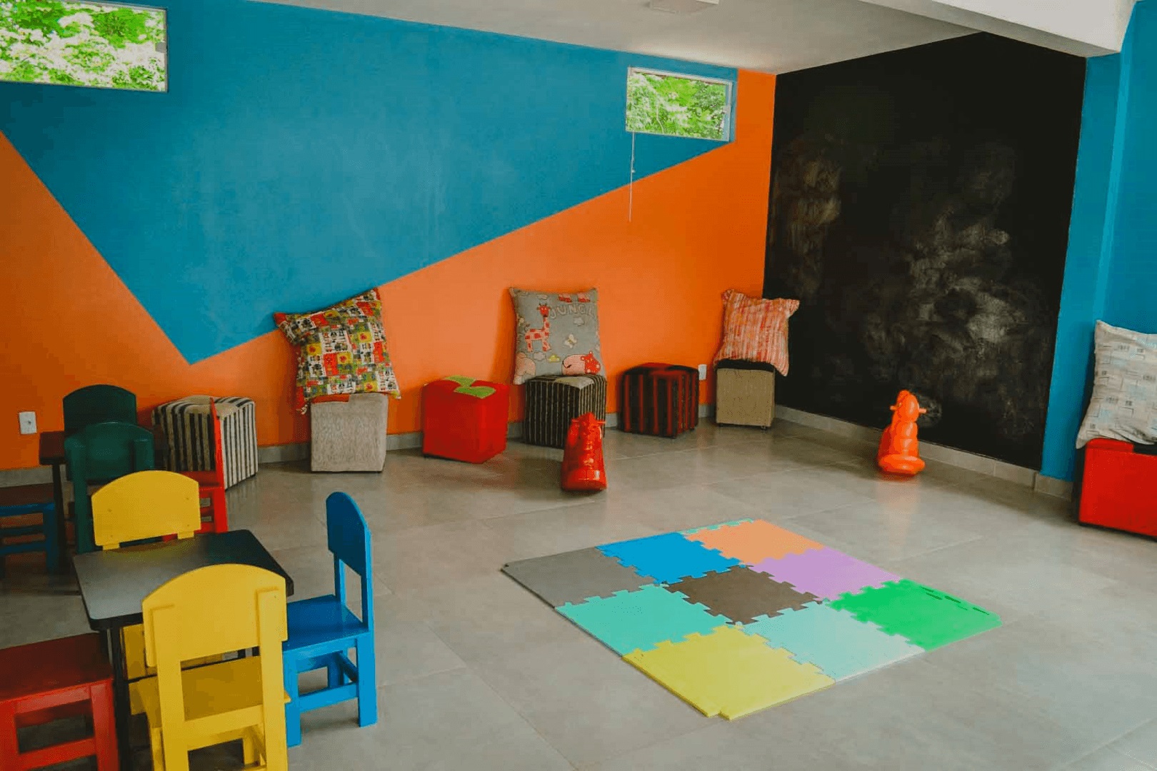 Todos os chalés são climatizados possuindo ar condicionado e ventilador, são amplos acomodando de 3 a 4 pessoas em camas box, além de Tv Led, frigobar, mesa e cadeira e estacionamento para carros ao lado de quase todos os chalés.