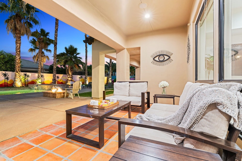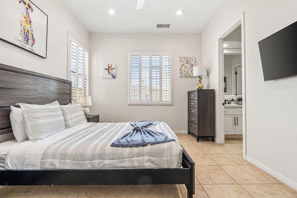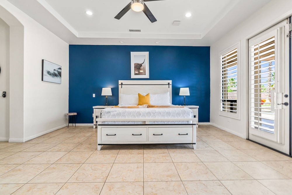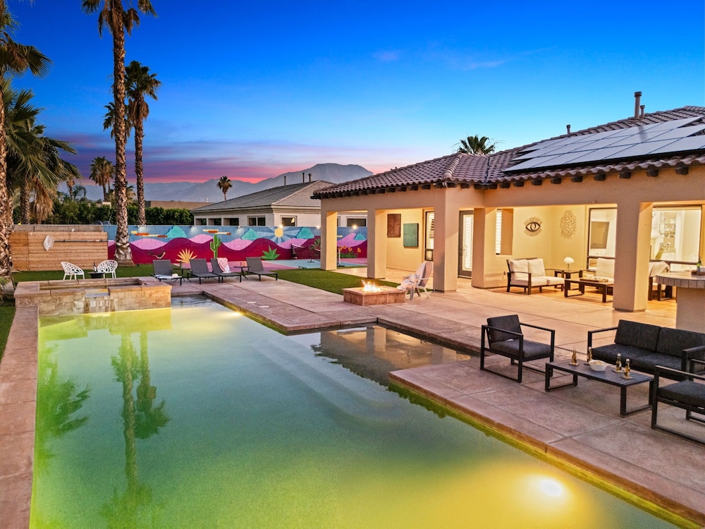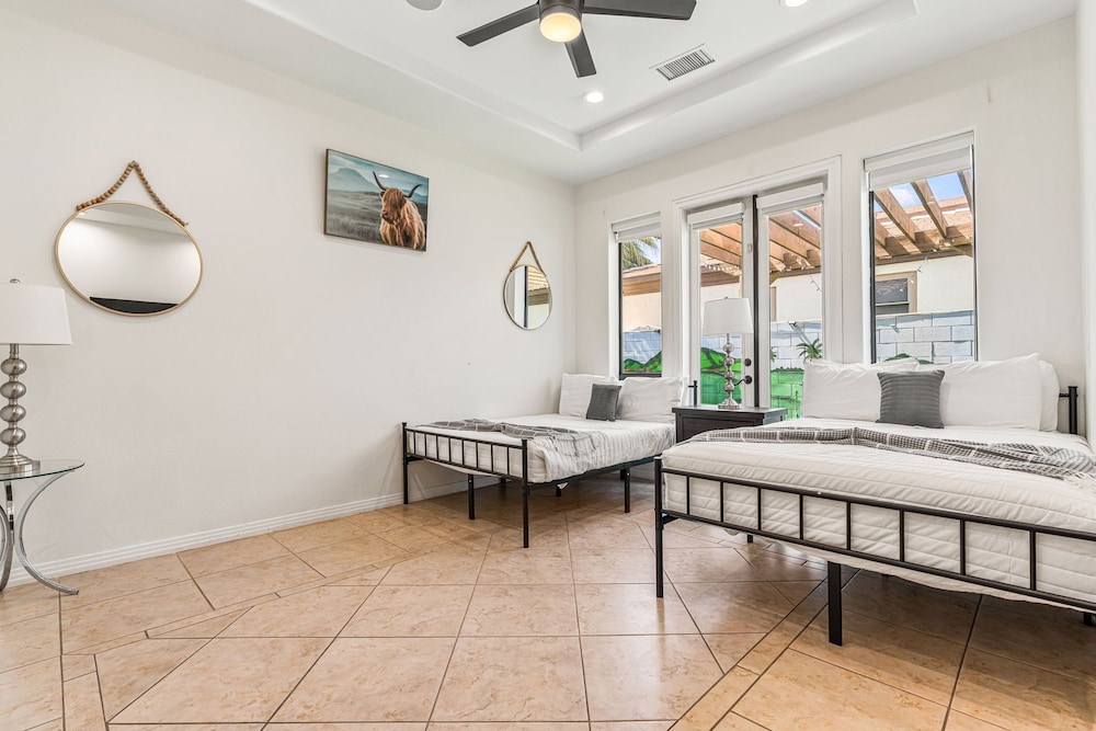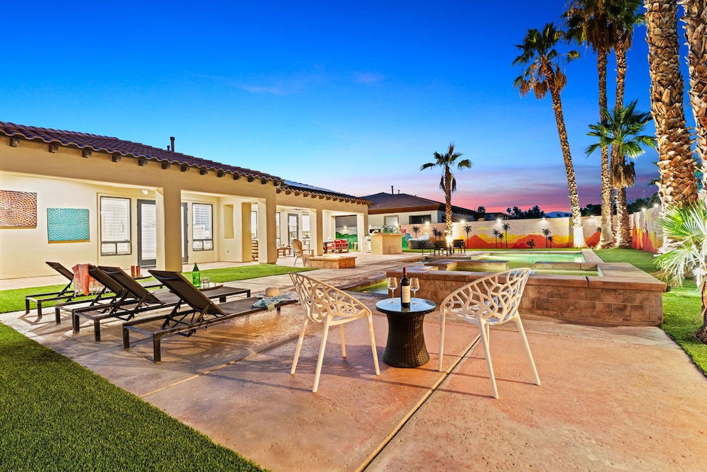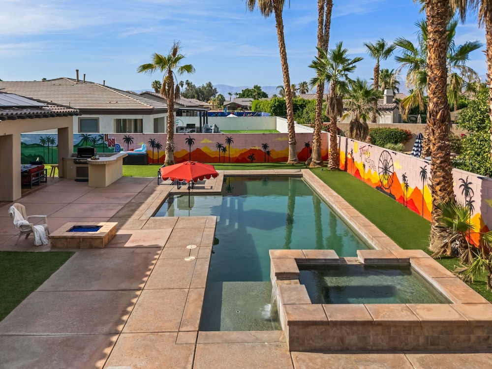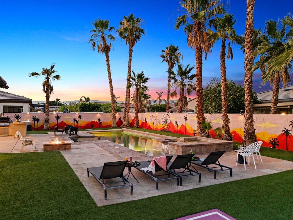 Dieses Ferienhaus in Indio liegt in der Nähe eines Golfplatzes, eine 4-minütige Fahrt von Empire Polo Club und 9 Minuten Fahrt von Indian Wells Tennis Garden entfernt. Dieses Ferienhaus mit Golfplatz ist 46,1 km von Joshua Tree Nationalpark und 9,1 km von Fantasy Springs Casino entfernt. Dieses Ferienhaus individuell ausgestattet, zu der ein Kamin und ein Privatpool gehören, verspricht dir einen fantastischen Aufenthalt. Die Küche verfügt über einen großen Kühlschrank mit Gefrierfach, einen Ofen und eine Herdplatte. Ein 65-Zoll-Smart-TV mit Satellitenempfang sorgt für deine Unterhaltung, während du von dem WLAN-Internetzugang (kostenlos) profitieren kannst, um mit Freunden und Familie in Kontakt zu bleiben. Vor Ort findest du jeglichen Komfort, darunter eine separate Sitzecke und eine Mikrowelle. Entfernungen werden bis auf 0,1 Kilometer gerundet.