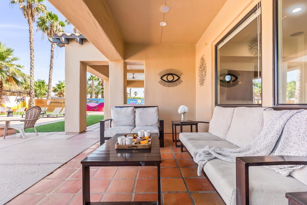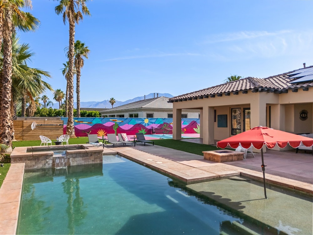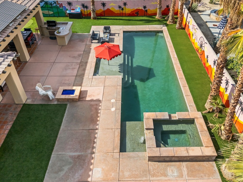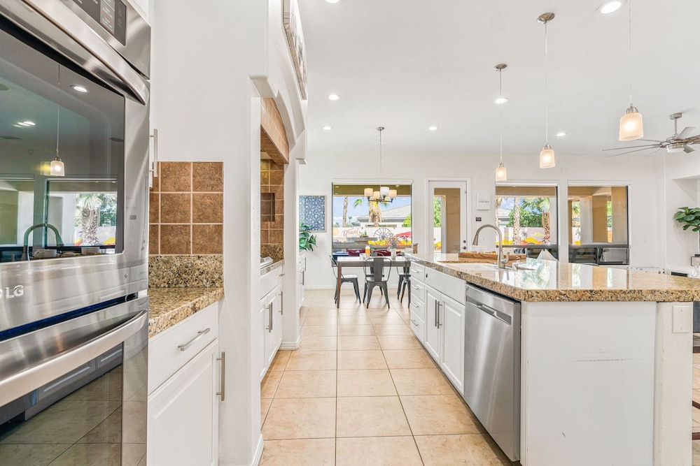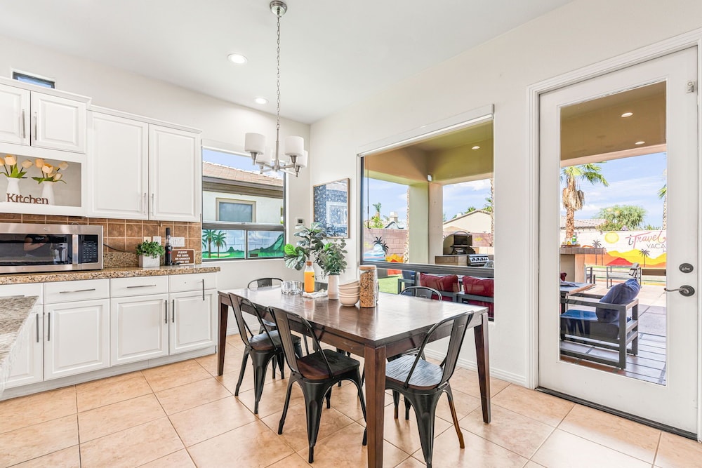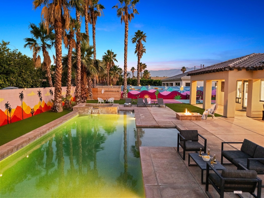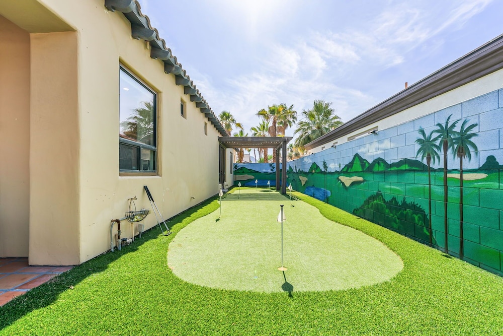 Dieses Ferienhaus in Indio liegt in der Nähe eines Golfplatzes, eine 4-minütige Fahrt von Empire Polo Club und 9 Minuten Fahrt von Indian Wells Tennis Garden entfernt. Dieses Ferienhaus mit Golfplatz ist 46,1 km von Joshua Tree Nationalpark und 9,1 km von Fantasy Springs Casino entfernt. Dieses Ferienhaus individuell ausgestattet, zu der ein Kamin und ein Privatpool gehören, verspricht dir einen fantastischen Aufenthalt. Die Küche verfügt über einen großen Kühlschrank mit Gefrierfach, einen Ofen und eine Herdplatte. Ein 65-Zoll-Smart-TV mit Satellitenempfang sorgt für deine Unterhaltung, während du von dem WLAN-Internetzugang (kostenlos) profitieren kannst, um mit Freunden und Familie in Kontakt zu bleiben. Vor Ort findest du jeglichen Komfort, darunter eine separate Sitzecke und eine Mikrowelle. Entfernungen werden bis auf 0,1 Kilometer gerundet.