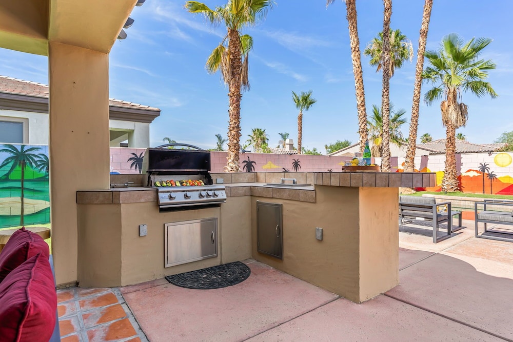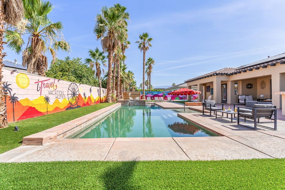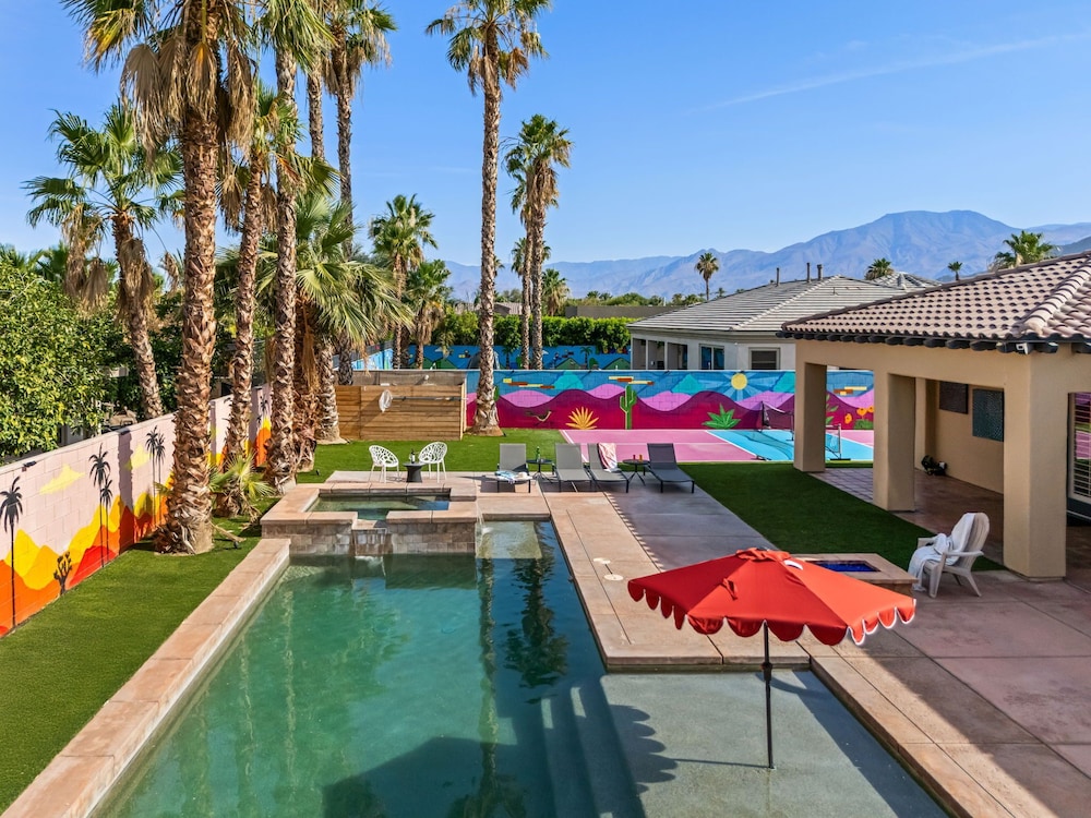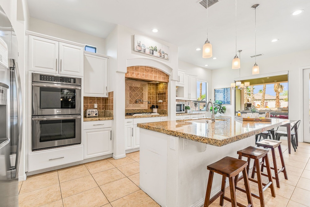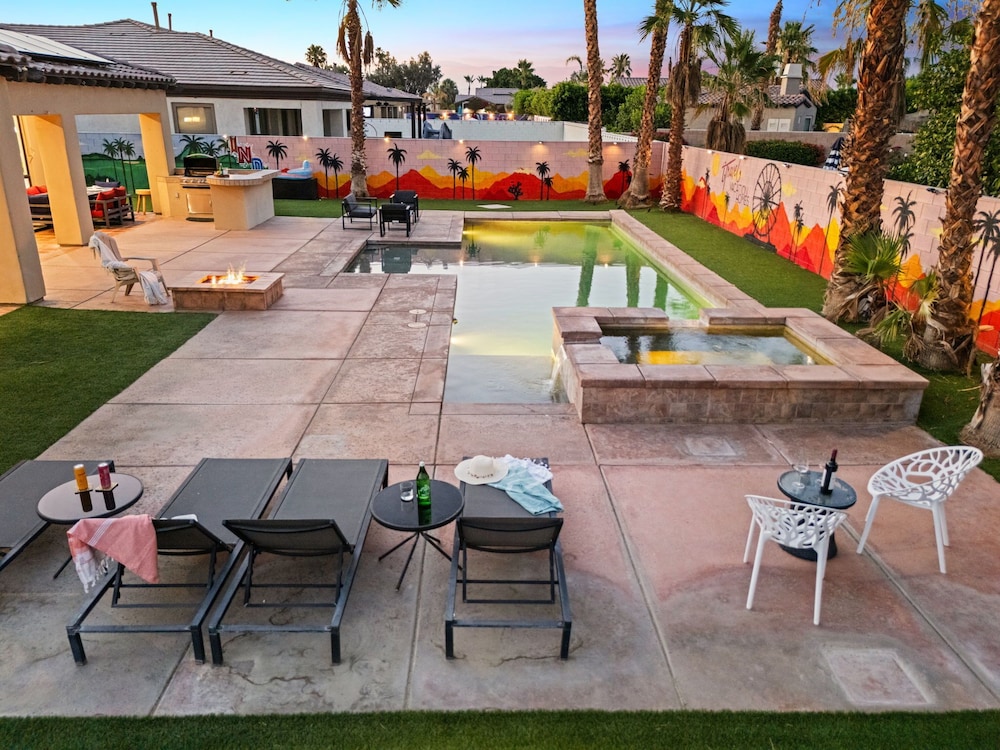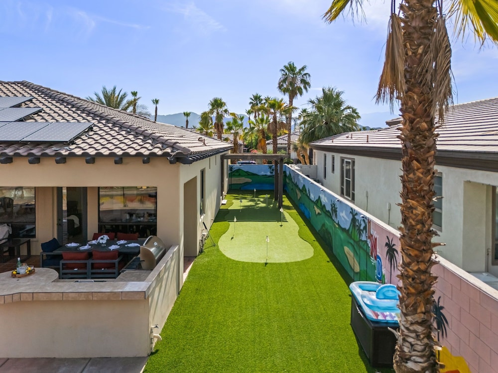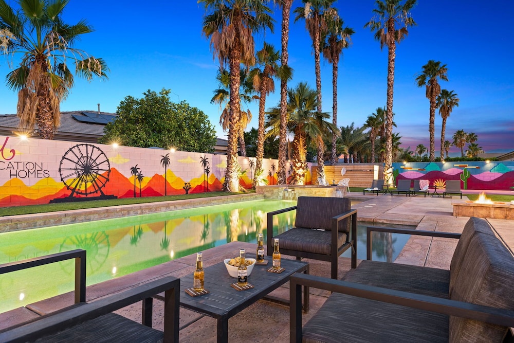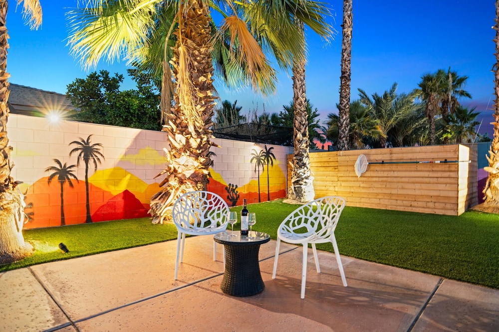 Dieses Ferienhaus in Indio liegt in der Nähe eines Golfplatzes, eine 4-minütige Fahrt von Empire Polo Club und 9 Minuten Fahrt von Indian Wells Tennis Garden entfernt. Dieses Ferienhaus mit Golfplatz ist 46,1 km von Joshua Tree Nationalpark und 9,1 km von Fantasy Springs Casino entfernt. Dieses Ferienhaus individuell ausgestattet, zu der ein Kamin und ein Privatpool gehören, verspricht dir einen fantastischen Aufenthalt. Die Küche verfügt über einen großen Kühlschrank mit Gefrierfach, einen Ofen und eine Herdplatte. Ein 65-Zoll-Smart-TV mit Satellitenempfang sorgt für deine Unterhaltung, während du von dem WLAN-Internetzugang (kostenlos) profitieren kannst, um mit Freunden und Familie in Kontakt zu bleiben. Vor Ort findest du jeglichen Komfort, darunter eine separate Sitzecke und eine Mikrowelle. Entfernungen werden bis auf 0,1 Kilometer gerundet.