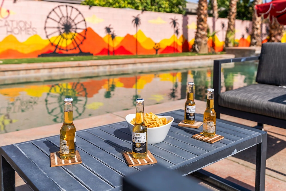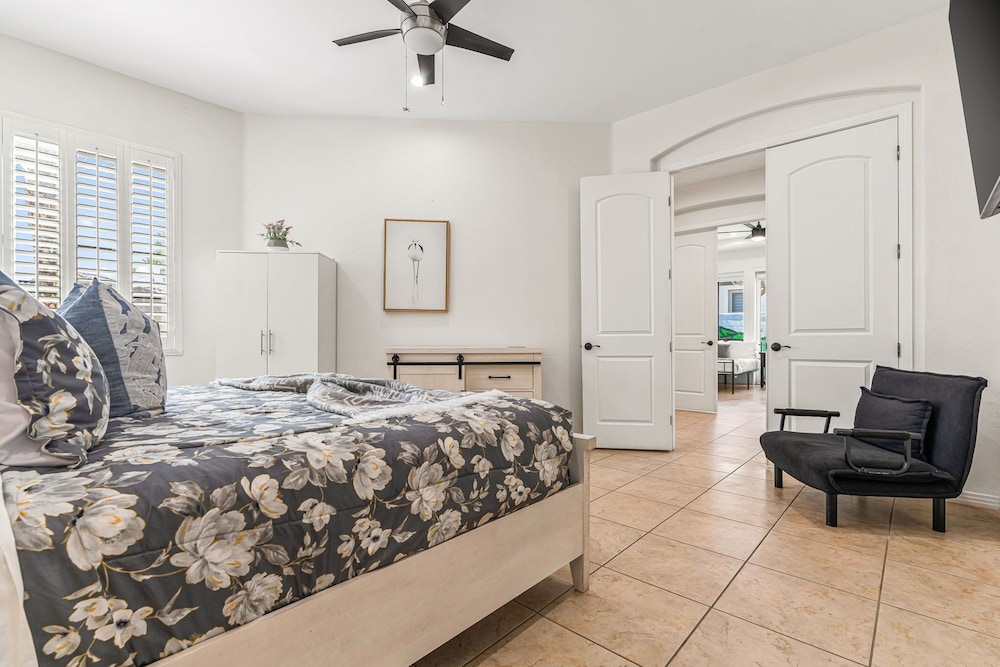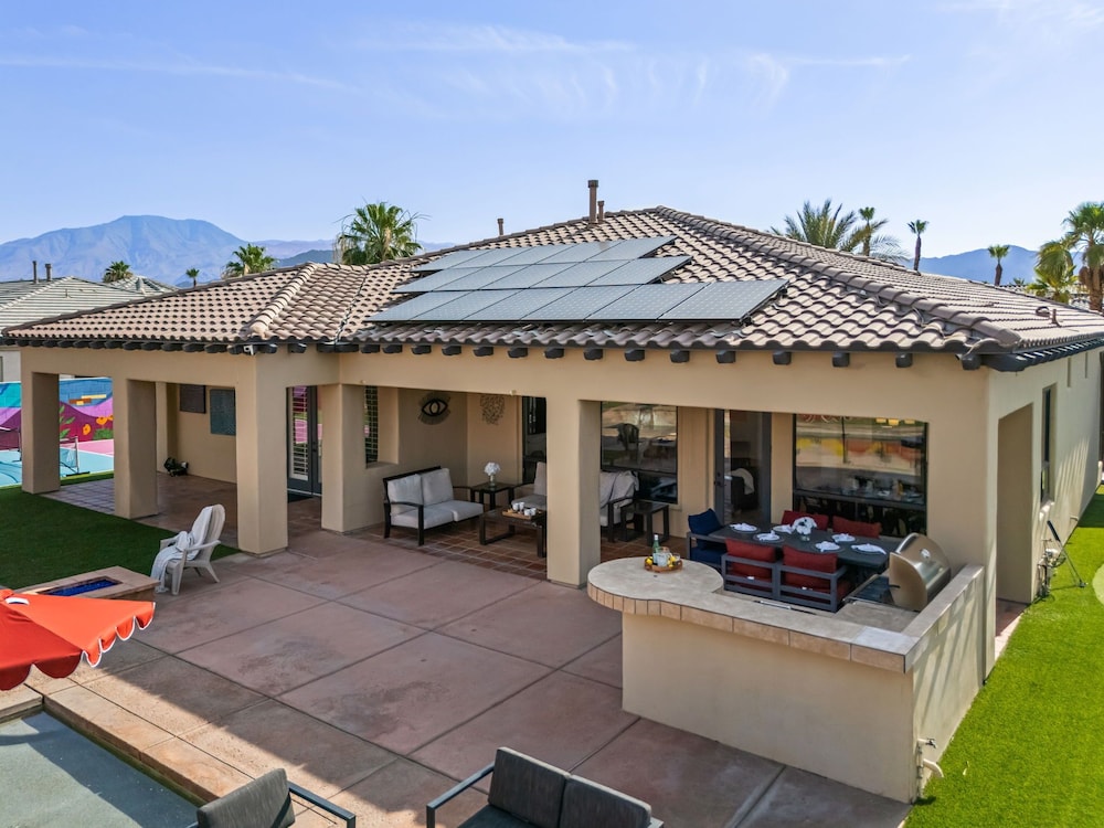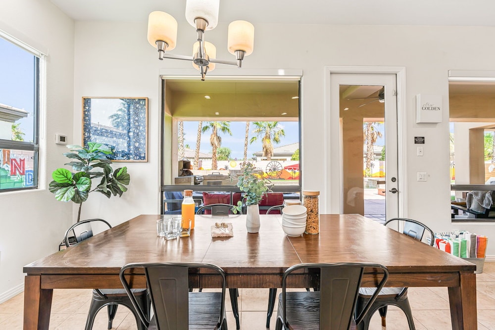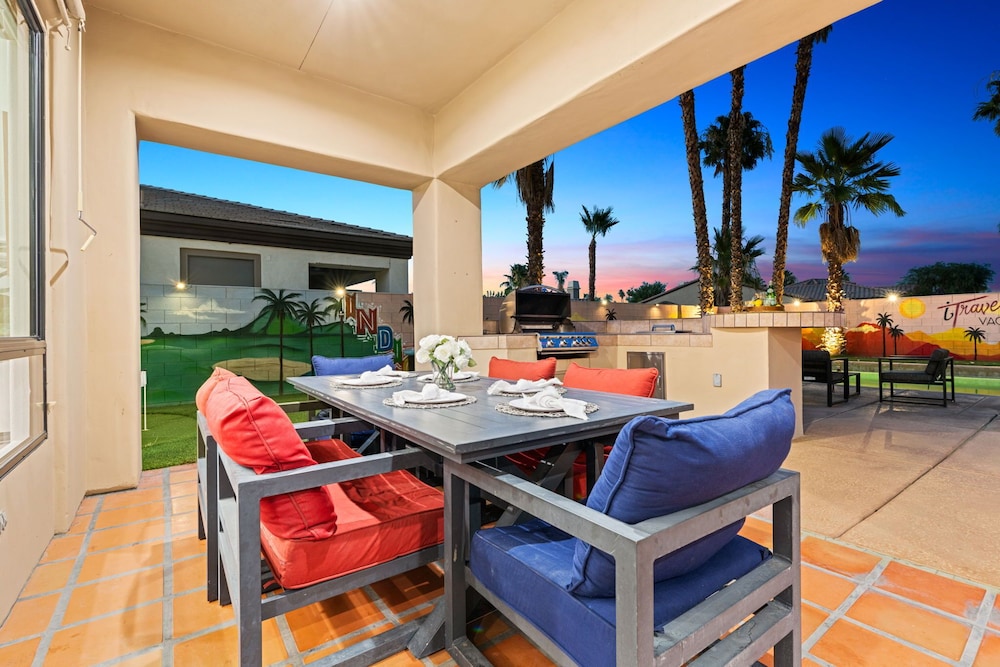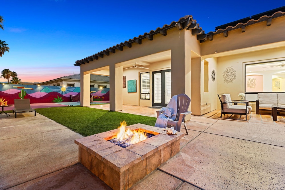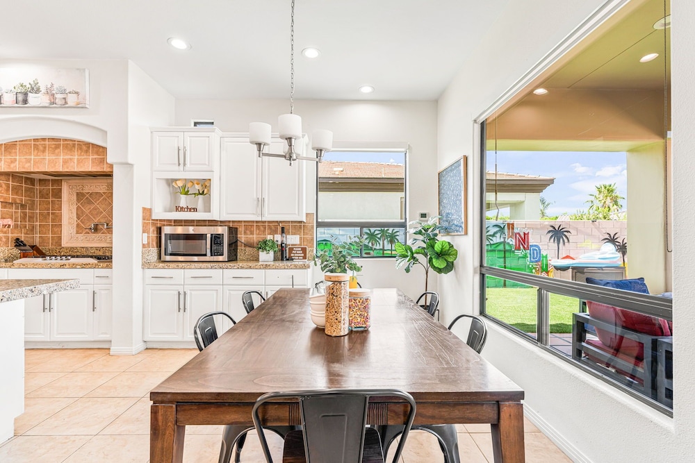 Dieses Ferienhaus in Indio liegt in der Nähe eines Golfplatzes, eine 4-minütige Fahrt von Empire Polo Club und 9 Minuten Fahrt von Indian Wells Tennis Garden entfernt. Dieses Ferienhaus mit Golfplatz ist 46,1 km von Joshua Tree Nationalpark und 9,1 km von Fantasy Springs Casino entfernt. Dieses Ferienhaus individuell ausgestattet, zu der ein Kamin und ein Privatpool gehören, verspricht dir einen fantastischen Aufenthalt. Die Küche verfügt über einen großen Kühlschrank mit Gefrierfach, einen Ofen und eine Herdplatte. Ein 65-Zoll-Smart-TV mit Satellitenempfang sorgt für deine Unterhaltung, während du von dem WLAN-Internetzugang (kostenlos) profitieren kannst, um mit Freunden und Familie in Kontakt zu bleiben. Vor Ort findest du jeglichen Komfort, darunter eine separate Sitzecke und eine Mikrowelle. Entfernungen werden bis auf 0,1 Kilometer gerundet.