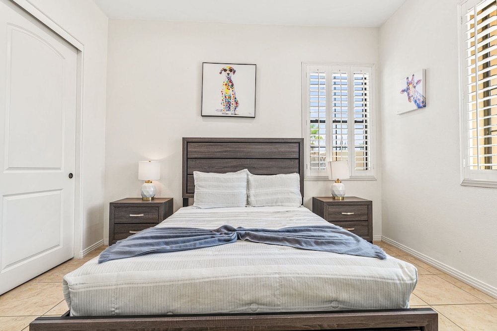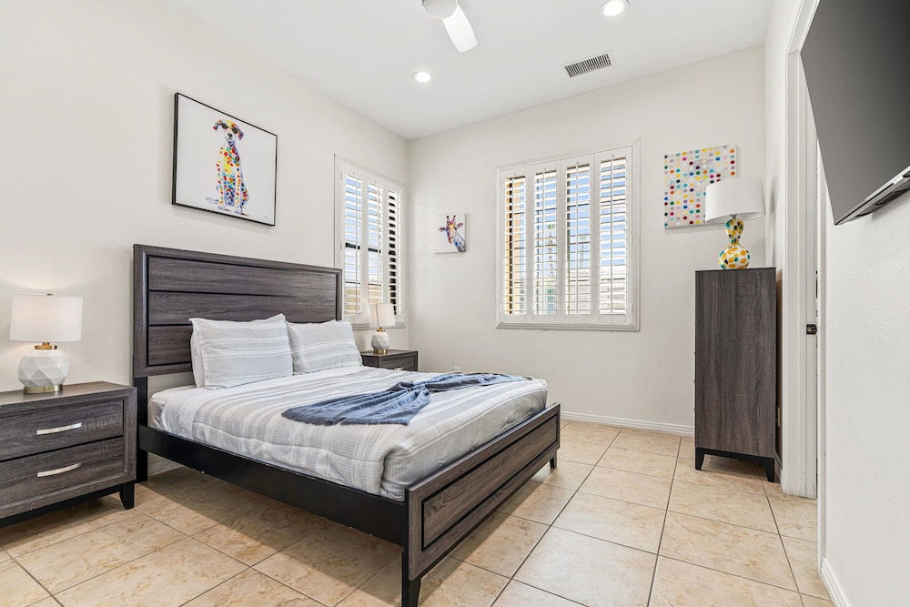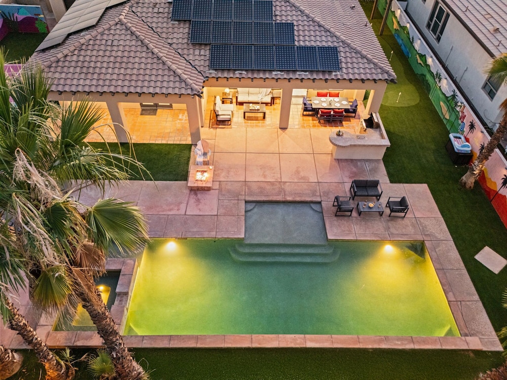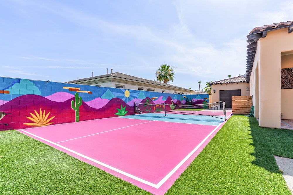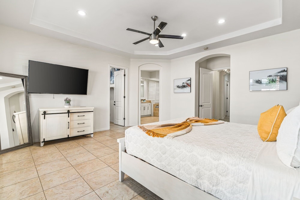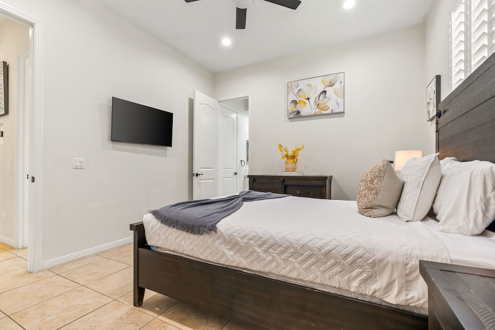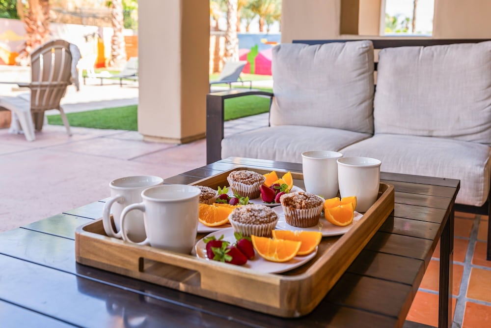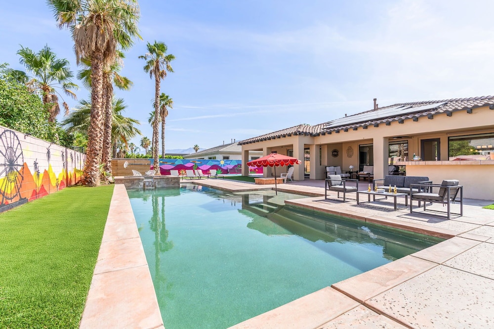 Dieses Ferienhaus in Indio liegt in der Nähe eines Golfplatzes, eine 4-minütige Fahrt von Empire Polo Club und 9 Minuten Fahrt von Indian Wells Tennis Garden entfernt. Dieses Ferienhaus mit Golfplatz ist 46,1 km von Joshua Tree Nationalpark und 9,1 km von Fantasy Springs Casino entfernt. Dieses Ferienhaus individuell ausgestattet, zu der ein Kamin und ein Privatpool gehören, verspricht dir einen fantastischen Aufenthalt. Die Küche verfügt über einen großen Kühlschrank mit Gefrierfach, einen Ofen und eine Herdplatte. Ein 65-Zoll-Smart-TV mit Satellitenempfang sorgt für deine Unterhaltung, während du von dem WLAN-Internetzugang (kostenlos) profitieren kannst, um mit Freunden und Familie in Kontakt zu bleiben. Vor Ort findest du jeglichen Komfort, darunter eine separate Sitzecke und eine Mikrowelle. Entfernungen werden bis auf 0,1 Kilometer gerundet.