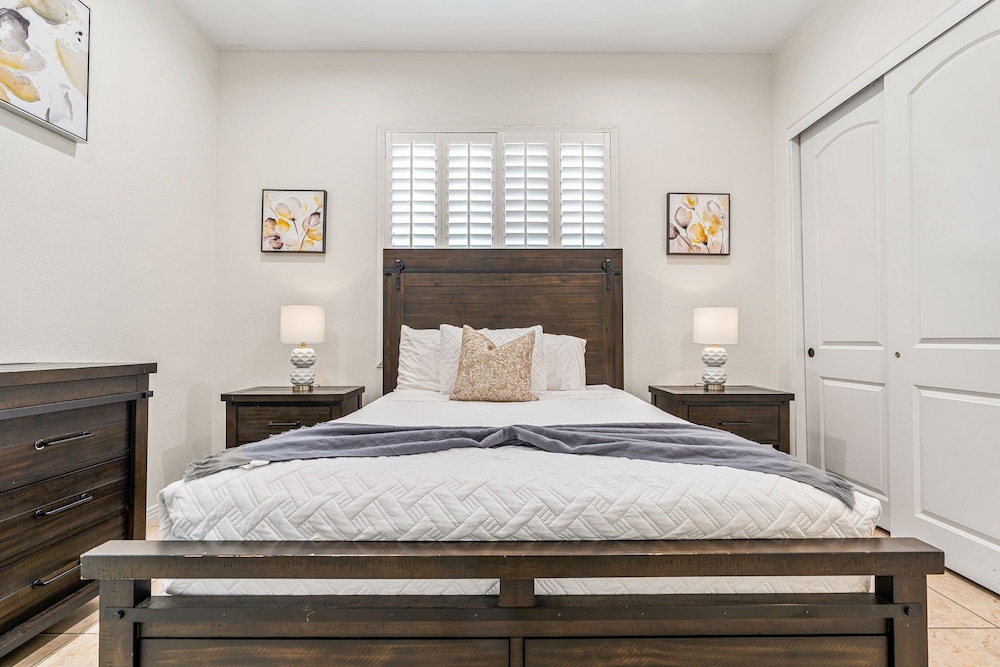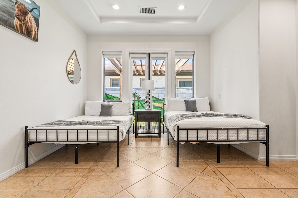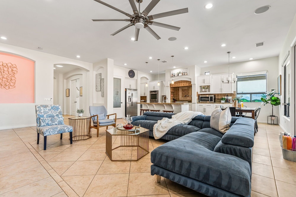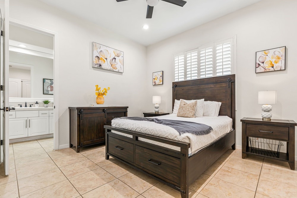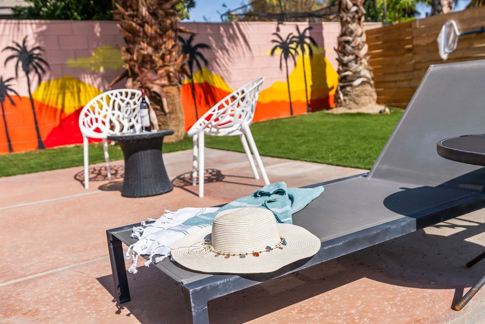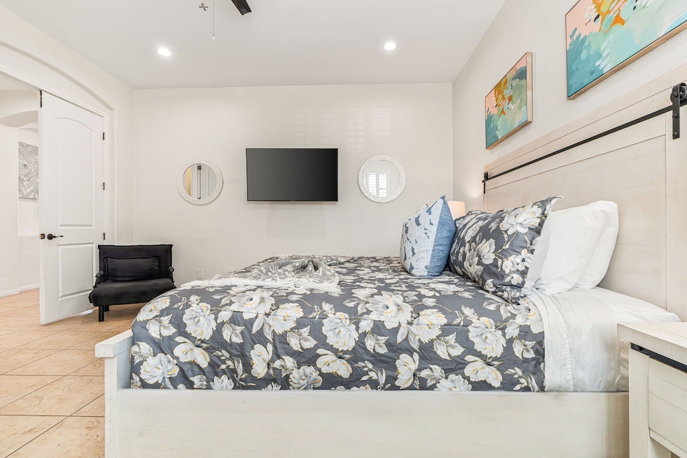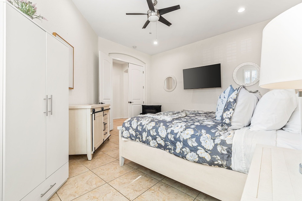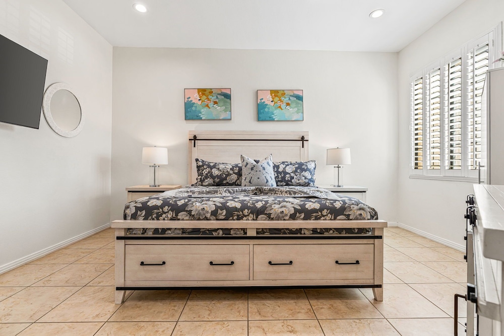 Dieses Ferienhaus in Indio liegt in der Nähe eines Golfplatzes, eine 4-minütige Fahrt von Empire Polo Club und 9 Minuten Fahrt von Indian Wells Tennis Garden entfernt. Dieses Ferienhaus mit Golfplatz ist 46,1 km von Joshua Tree Nationalpark und 9,1 km von Fantasy Springs Casino entfernt. Dieses Ferienhaus individuell ausgestattet, zu der ein Kamin und ein Privatpool gehören, verspricht dir einen fantastischen Aufenthalt. Die Küche verfügt über einen großen Kühlschrank mit Gefrierfach, einen Ofen und eine Herdplatte. Ein 65-Zoll-Smart-TV mit Satellitenempfang sorgt für deine Unterhaltung, während du von dem WLAN-Internetzugang (kostenlos) profitieren kannst, um mit Freunden und Familie in Kontakt zu bleiben. Vor Ort findest du jeglichen Komfort, darunter eine separate Sitzecke und eine Mikrowelle. Entfernungen werden bis auf 0,1 Kilometer gerundet.