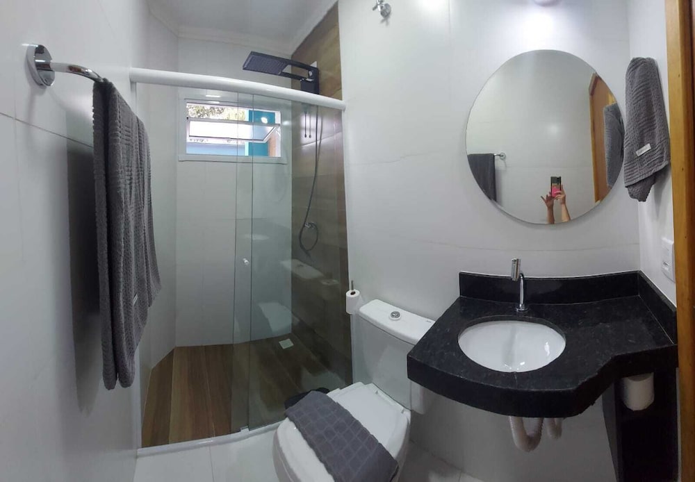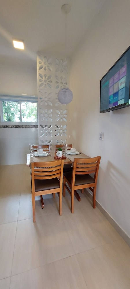 Im Herzen von Ubatuba gelegen, liegt diese Residenz eine 5-minütige Fahrt von Ubatuba Aquarium und Strand von Tenorio entfernt. Diese Residenz ist 7,1 km von Strand von Toninhas und 17,6 km von Strand von Itamambuca entfernt. Die Küche verfügt über einen Kühlschrank, eine Herdplatte und eine Mikrowelle. Mit dem kostenfreien Internetzugang per Kabel und WLAN bleibst du auch während deines Aufenthalts immer in Verbindung. Ein 32-Zoll-Smart-TV sorgt für Unterhaltung. Das Badezimmer ist mit einer Dusche und einem Haartrockner versehen. Entfernungen werden bis auf 0,1 Kilometer gerundet.