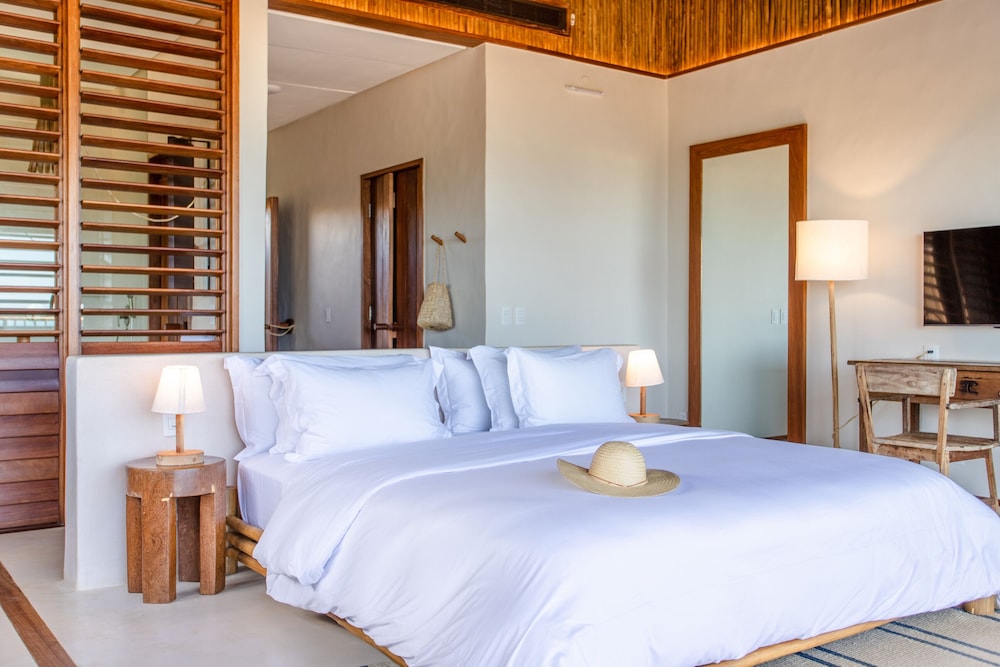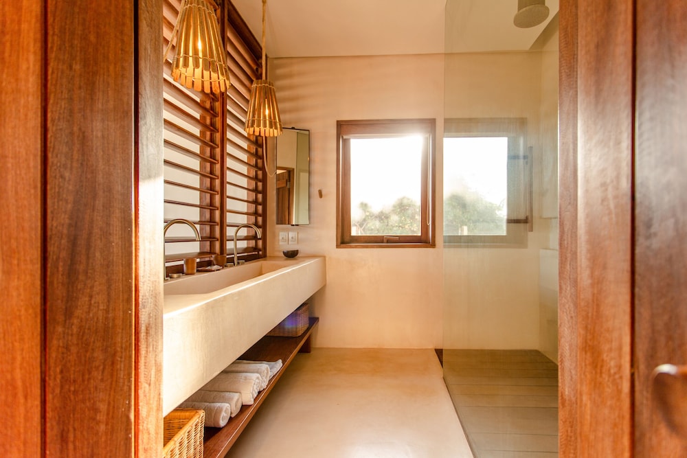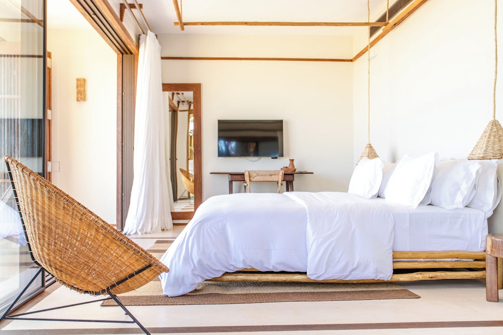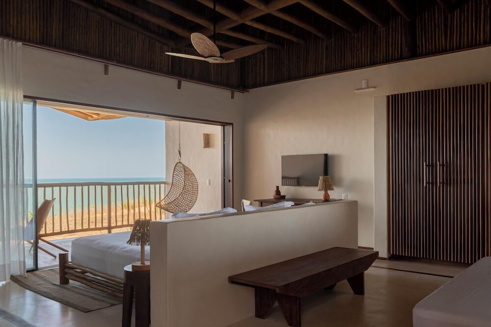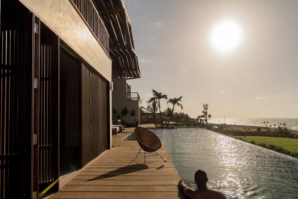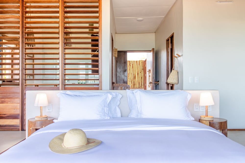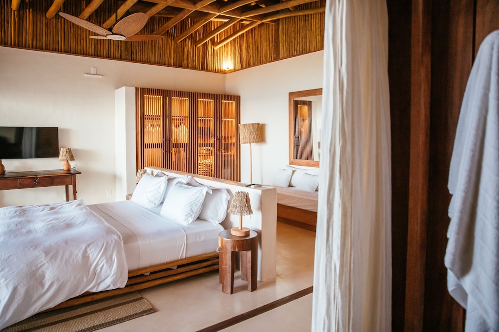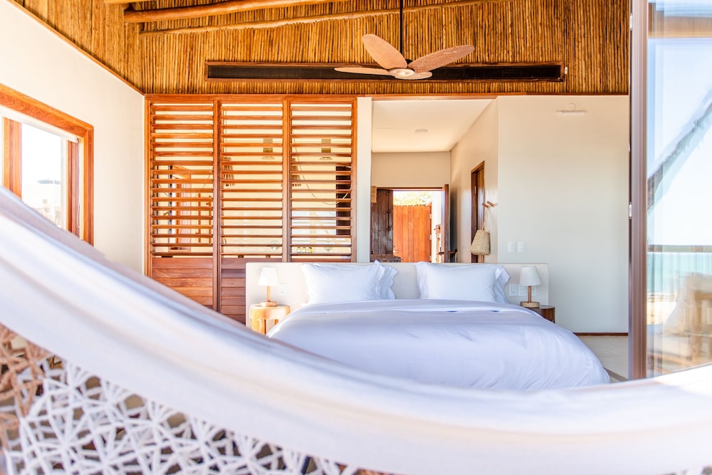 Villa Mandi in Jijoca de Jericoacoara liegt am Strand, nur wenige Schritte von Strand von Malhada und Kapelle Nossa Senhora de Fatima entfernt. Dieses Hotel in Strandnähe ist 43,7 km von Praia do Preá und 0,1 km von Strand von Jericoacoara entfernt. Fühl dich in einem der 6 klimatisierten Zimmer mit Minibar und Smart-TV wie zu Hause. In deinem Zimmer findest du ein Pillowtop-Bett mit hochwertige Bettwaren vor. Ein WLAN-Internetzugang (kostenlos) ist ebenso verfügbar wie Digitalempfang. Es gibt eigene Badezimmer, die über Designer-Toilettenartikel und Haartrockner verfügen. Entfernungen werden bis auf 0,1 Kilometer gerundet.