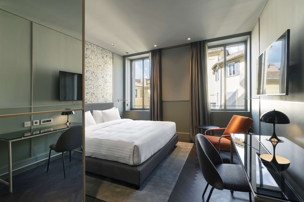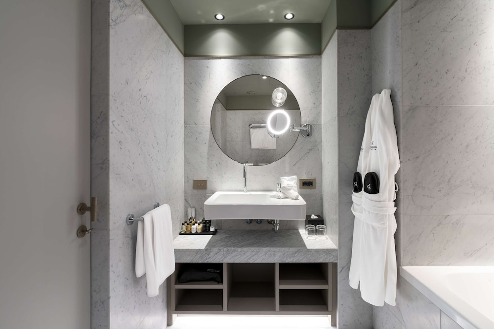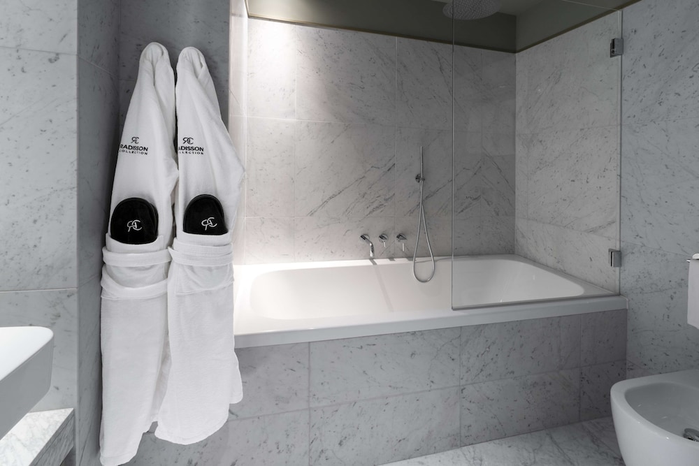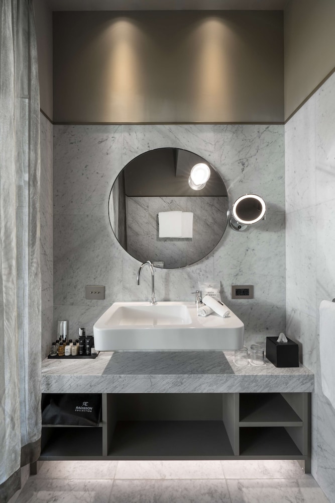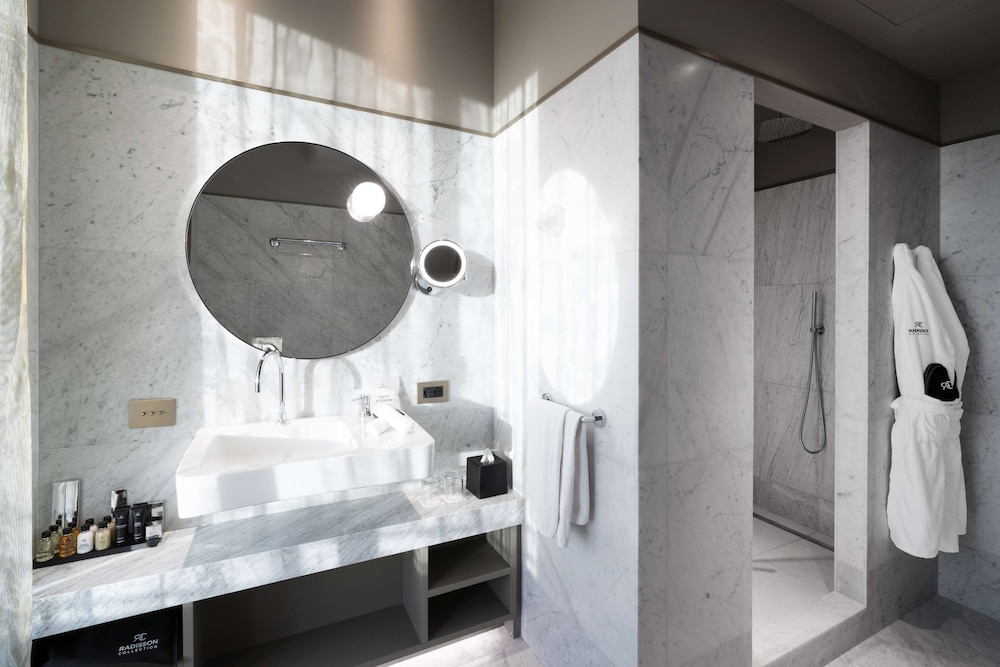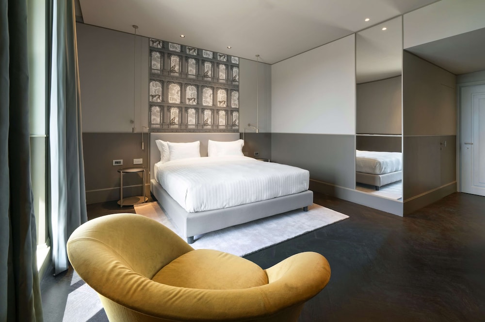 Radisson Collection Hotel, Roma Antica liegt im Herzen von Rom, nur 10 Gehminuten entfernt von: Pantheon und Campo de' Fiori. Dieses Hotel im luxuriösen Stil ist 0,9 km von Piazza Navona und 1 km von Trevi-Brunnen entfernt. Fühl dich in einem der 84 klimatisierten Zimmer mit Minibar und Flachbildfernseher wie zu Hause. Fernseher mit Satellitenempfang lassen keine Langeweile aufkommen. Es sind eigene Badezimmer mit Badewannen oder Duschen vorhanden, die über Bidets und Haartrockner verfügen. Zur Austattung gehören Telefone ebenso wie Safes in Laptop-Größe und Wasserkocher mit Kaffee-/Teezubehör. Entfernungen werden bis auf 0,1 Kilometer gerundet.