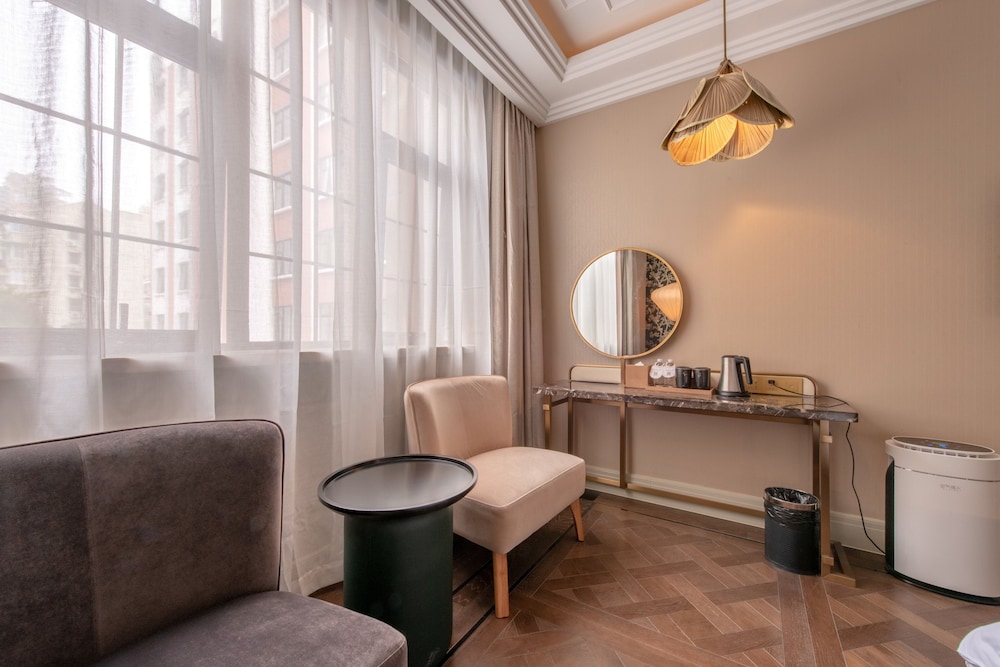 Jinjiang Metropolo Shanghai Xintiandi Hotel besticht durch eine zentrale Lage in Shanghai, nur 5 Minuten Fahrt entfernt von: Bund und Xintiandi Style Shopping Centre. Dieses Hotel ist 2,9 km von Platz des Volkes und 4,2 km von Einkaufsstraße Nanjing Road entfernt. Fühl dich in einem der 141 Zimmer wie zu Hause. Es gibt einen kostenfreien Internetzugang per Kabel und WLAN sowie Kabelempfang. Es sind eigene Badezimmer mit Duschen vorhanden, die über Haartrockner und Hausschuhe verfügen. Zur Austattung gehören Telefone ebenso wie Safes und Wasserkocher mit Kaffee-/Teezubehör. Entfernungen werden bis auf 0,1 Kilometer gerundet.