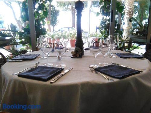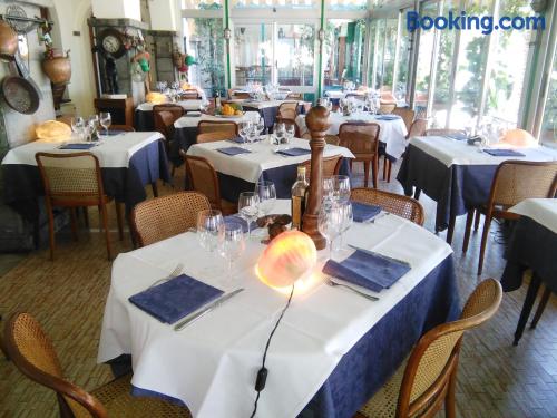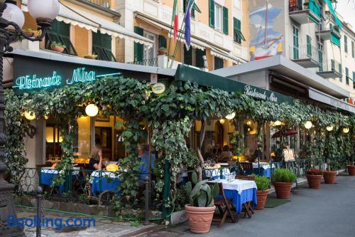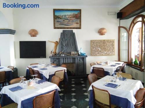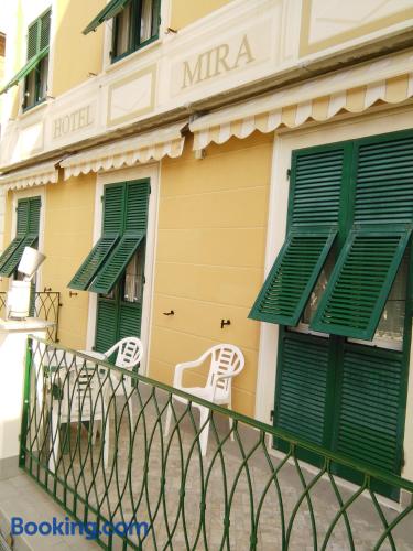 Located in front of the beach, Ristorante Hotel Mira offers classic accommodation in Sestri Levante. With a terrace, the property is 800 metres from Sestri Levante Station.Rooms here come with air conditioning and free Wi-Fi. The private bathroom includes a hairdryer and free toiletries.A continental breakfast is served daily. There is also a bar and a restaurant serving typical Ligurian cuisine.Ristorante Hotel Mira is 30 km from Portofino, while Genova is a 40-minute drive away.In response to Coronavirus (COVID-19), additional safety and sanitation measures are in effect at this property.