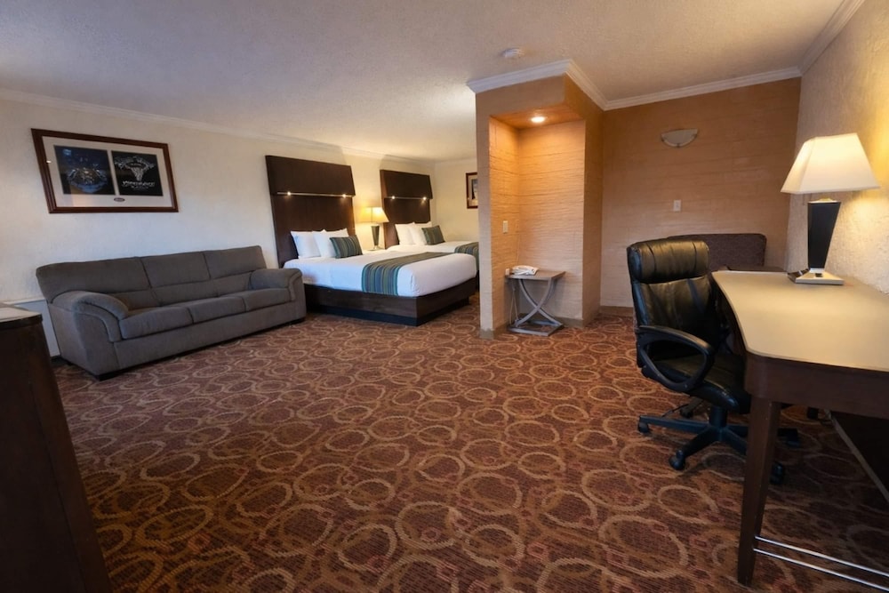 Sturgis Lodge & Suites, Travelodge by Wyndham in Sturgis ist nur einen 15-minütigen Fußmarsch von Monument Health Sturgis Hospital und Saab Heritage Car Museum entfernt. Dieses Hotel ist 26,8 km von Black Hills National Forest und 1,1 km von Wareing Motors Off-Leash Dog Park entfernt. Fühl dich in einem der 55 klimatisierten Zimmer mit Kühlschrank und Mikrowelle wie zu Hause. Es gibt einen kostenfreien Internetzugang per Kabel und WLAN; 32-Zoll LCD-Fernseher mit Kabelempfang sorgen für Unterhaltung. Es sind eigene Badezimmer mit Duschwannen vorhanden, die über kostenlose Toilettenartikel und Haartrockner verfügen. Zur Austattung gehören Telefone ebenso wie Safes und Schreibtische. Entfernungen werden bis auf 0,1 Kilometer gerundet.
