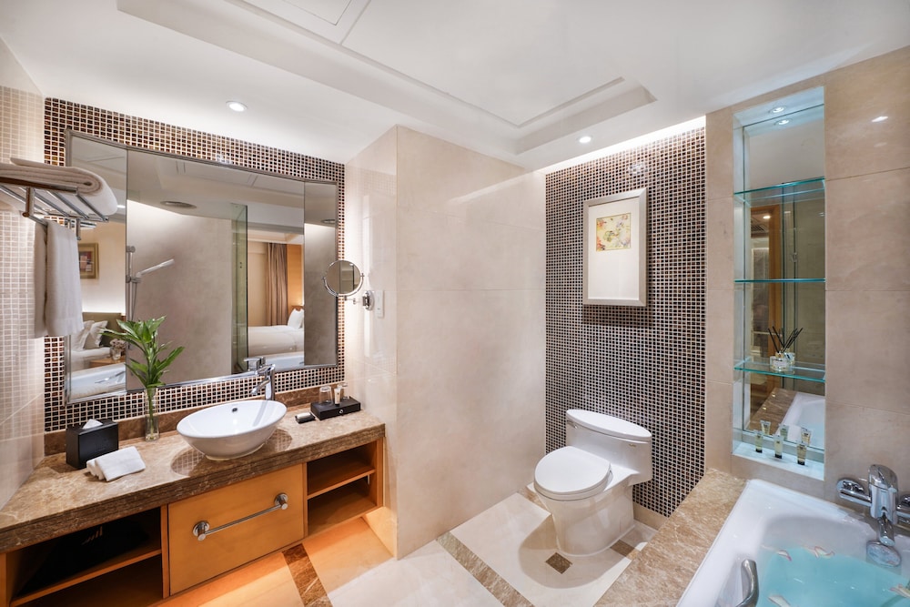 Zum Angebot gehören ein kostenloser Internetzugang per Kabel, ein Limousinenservice und ein Express-Check-in. Wenn du eine Veranstaltung in Chengdu planst, ist dieses Hotel eine gute Wahl, denn zu den 4176 Quadratfuß (388 Quadratmeter) großen Veranstaltungsräumlichkeiten zählen Konferenzfläche und Tagungsräume. Vor Ort gibt es Folgendes: Parken ohne Service (kostenlos). Gönn dir Massagen, Körperbehandlungen und Gesichtsbehandlungen, die vor Ort angeboten werden. Für deine Freizeit bieten sich folgende Einrichtungen an: Innenpool, Sauna und Fitnessbereich (rund um die Uhr geöffnet). Zu den Highlights, die dieses Hotel im Art-déco-Stil bietet, gehören auch kostenloses WLAN, ein Concierge-Service und ein Hochzeitsservice. Iss einen Happen im 琥珀西餐厅, einem der 2 Restaurants dieses Hotels, oder mach es dir in deinem Zimmer gemütlich und nutz den Zimmerservice (rund um die Uhr). Lass deinen Tag bei einem Drink an der Bar/Lounge ausklingen. Ein Frühstücksbuffet wird unter der Woche von 06:30 Uhr bis 10:00 Uhr und am Wochenende von 06:30 Uhr bis 10:30 Uhr gegen Gebühr angeboten. Die von unserem Bewertungssystem angegebene Unterkunftsklasse basiert auf der Art der Unterkunft, Annehmlichkeiten und Services.- Aufpreis für das Frühstücksbuffet: ca. 80 CNY bis 138 CNY für Erwachsene und ca. 50 CNY bis 80 CNY für Kinder