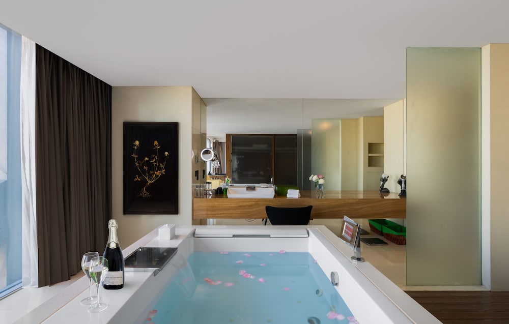 Hotel Eclat Beijing besticht durch eine zentrale Lage in Peking, nur 5 Minuten Fahrt entfernt von: Wangfujing Street und Sanlitun Straße. Dieses Hotel für Familien ist 5,3 km von Verbotene Stadt und 5,6 km von Palastmuseum Peking entfernt. Fühl dich in einem der 102 klimatisierten Zimmer mit Minibar und DVD-Player wie zu Hause. Es gibt einen kostenfreien Internetzugang per Kabel und WLAN; 46-Zoll LCD-Fernseher mit Satellitenempfang sorgen für Unterhaltung. Es gibt eigene Badezimmer mit Badewannen und Duschen (separat), die über Regenduschen und Designer-Toilettenartikel verfügen. Zur Austattung gehören Safes in Laptop-Größe und Schreibtische sowie Telefone, mit denen du kostenlose Ortsgespräche führen kannst. Entfernungen werden bis auf 0,1 Kilometer gerundet.